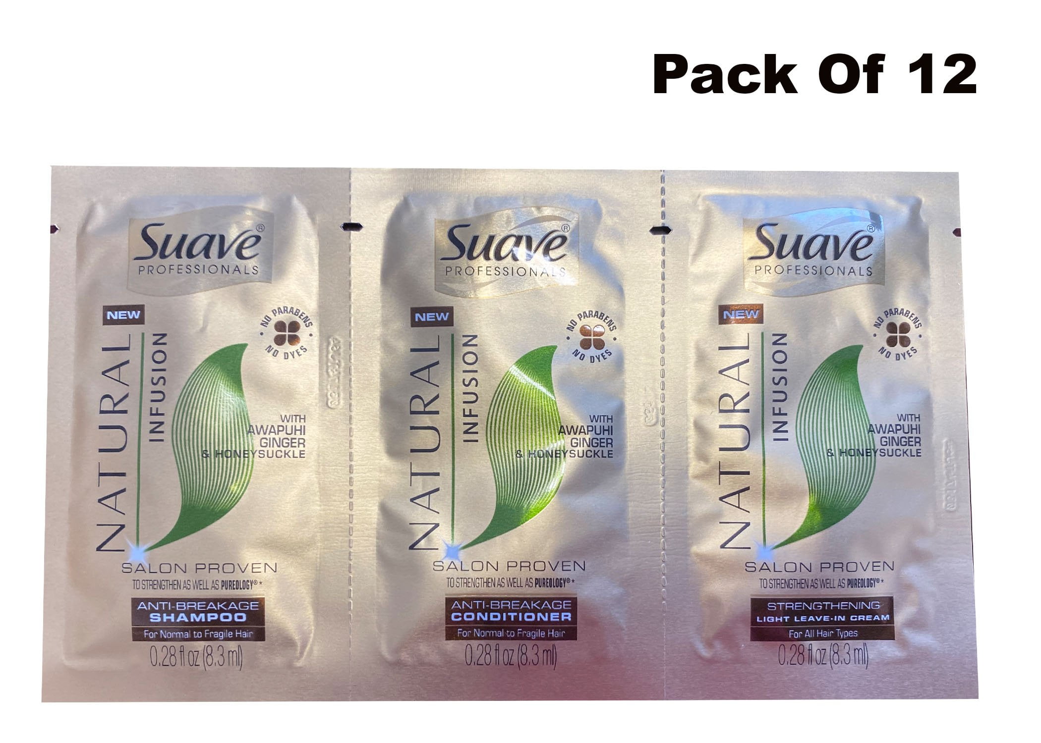 Suave PROFESSIONALS Shampoo / Conditioner And Light Leave Cream Pack of 12 SALON PROVEN ANTI-BREAKAGE SHAMPOO /ANTI- BREAKAGE CONDITIONER FOR NORMAL TO FRAGLE HAIR. LIGHT LEAVE CREAM FOR ALL HAIR TYPE