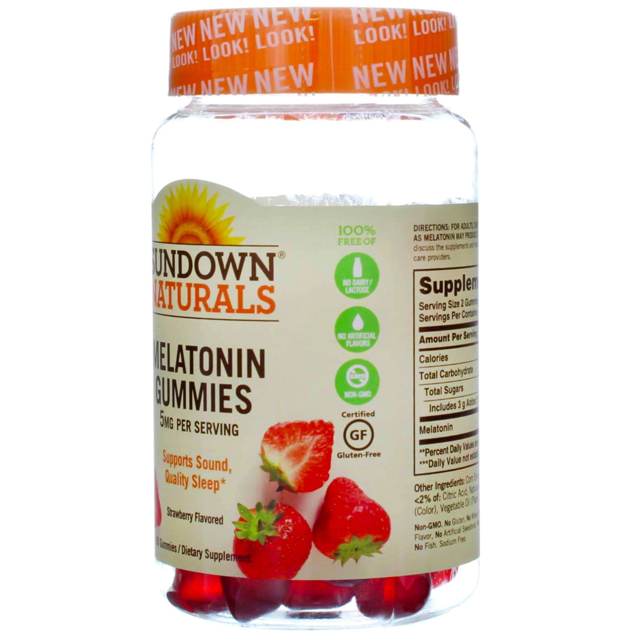 Sundown Naturals Melatonin Gummies 5mg Gluten Free 60ct EachSundown Naturals Melatonin strawberry gummies taste great, and provide you with 5 mg of Melatonin, which works in harmony with your natural sleep cycle to give you the tranquil rest you deserve.* With Melatonin Gummies, you can support sound, quality sleep, and awaken feeling refreshed.* Plus, Melatonin helps you get to sleep faster, and stay asleep longer.* Melatonin is ideal for people experiencing occasional sleeplessness, those with jet lag, or anyone seeking to improve their quality of rest.*