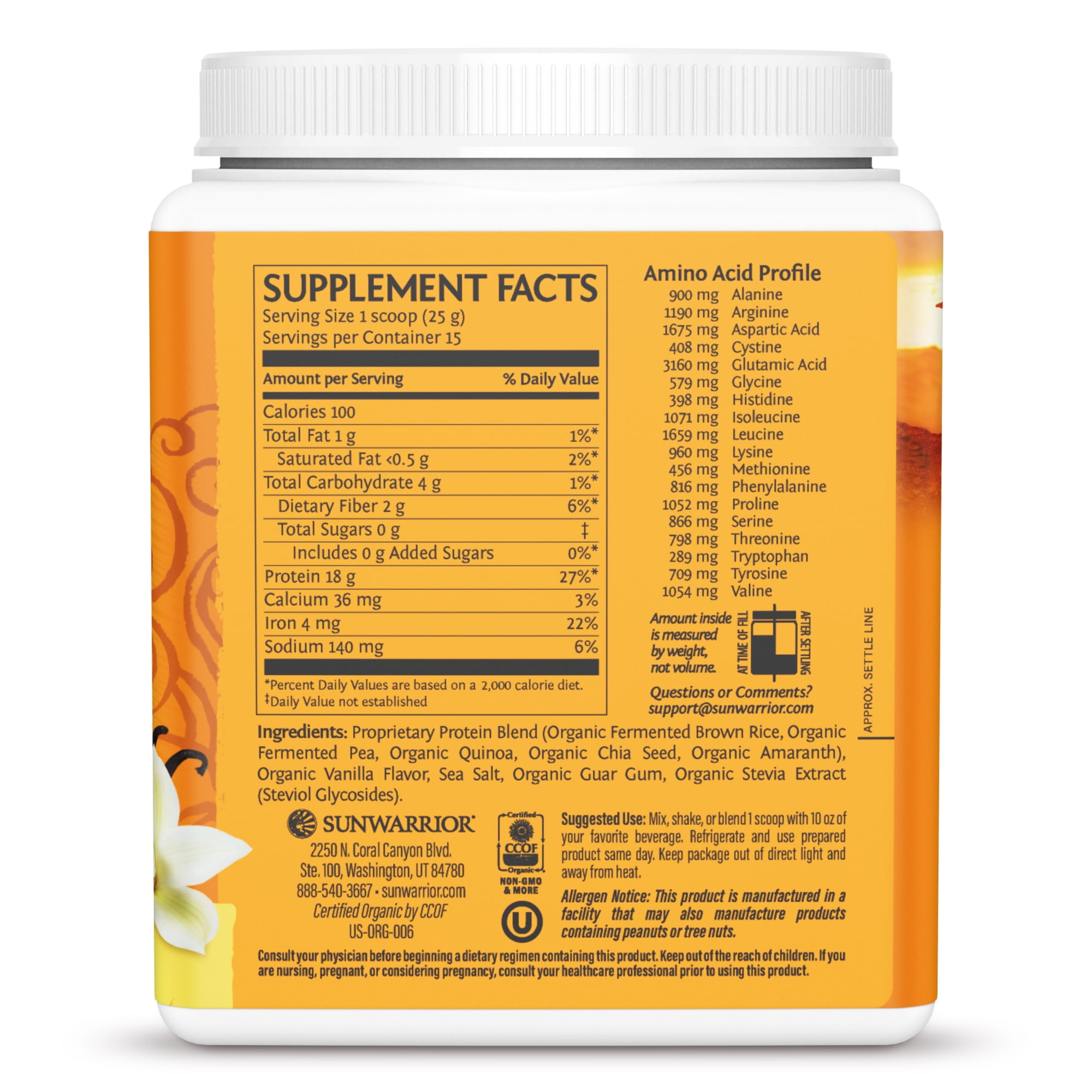 Sunwarrior Vegan,100% Organic Chia, Rice & Vanilla Protein Supplements, Vanilla, 1 Scoop, 13.2 oz