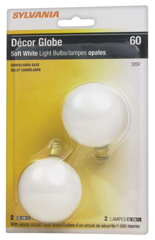 Sylvania 40W Small Globe, White, 2pk