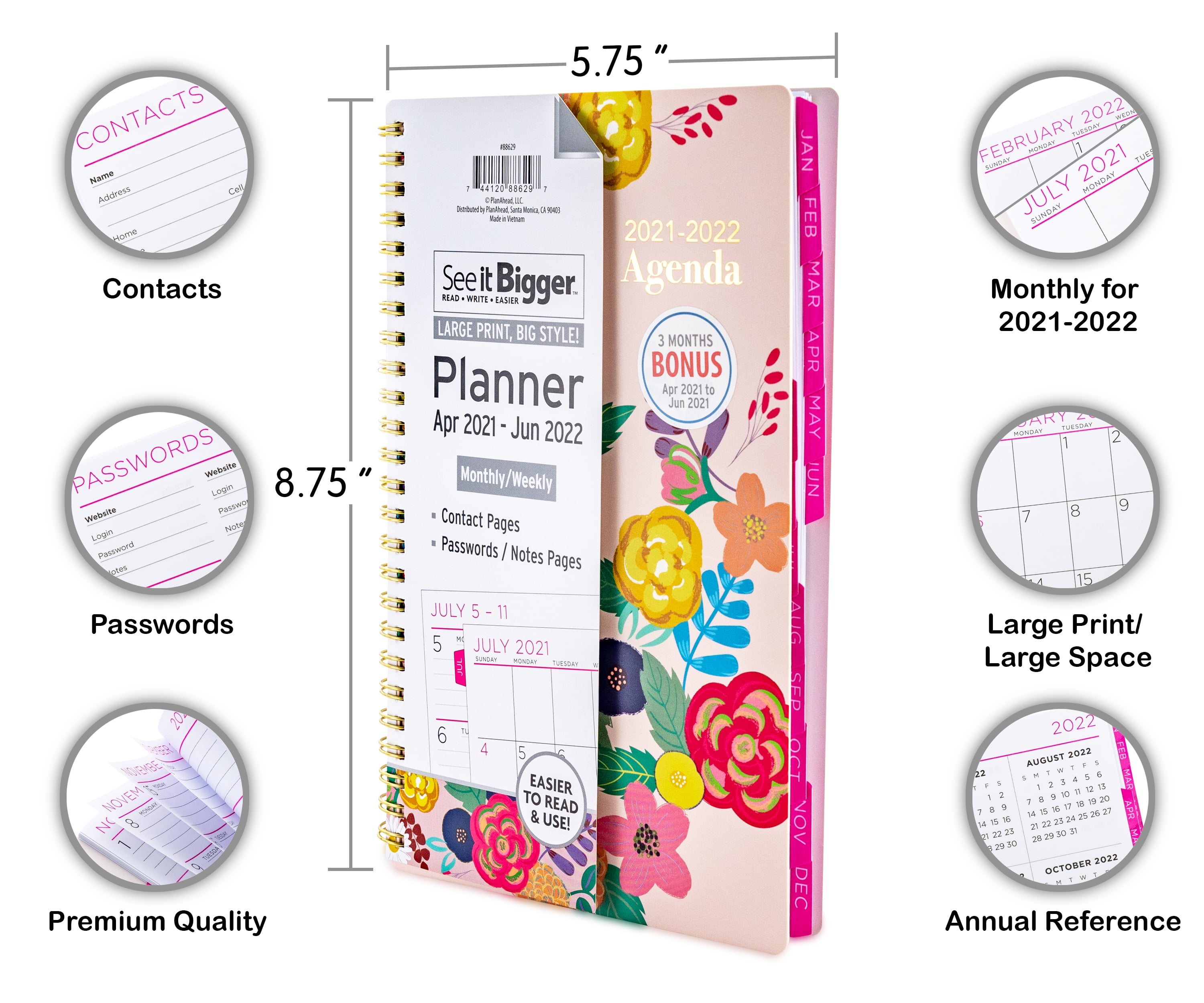 - Boasts monthly, 2-page spreads that include lined sections for notes, tasks, and goals and weekly