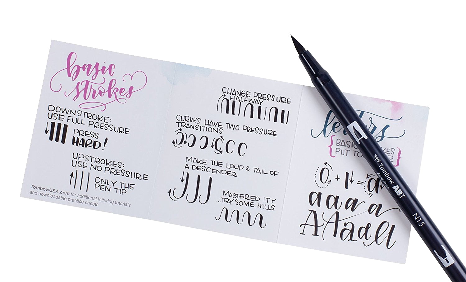 Learn lettering essentials with the Tombow Beginner Lettering Set. Includes everything you need to start hand lettering, including an instruction booklet with steps to get started.