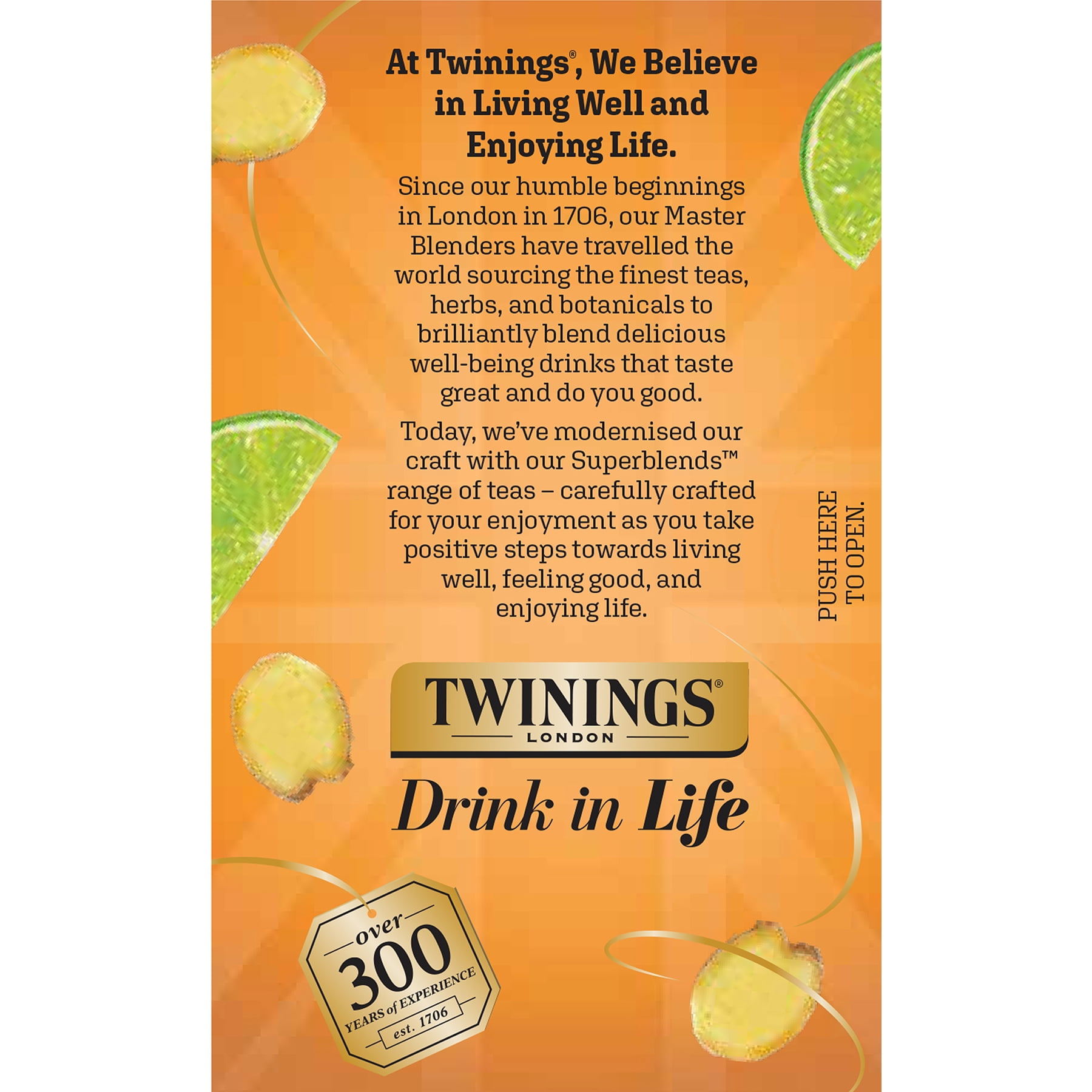 Twinings Superblends Supportive Ginger, Lime & Ginger Herbal Caffeine Free Tea, Supports a Healthy Immune System, 18 Tea Bags