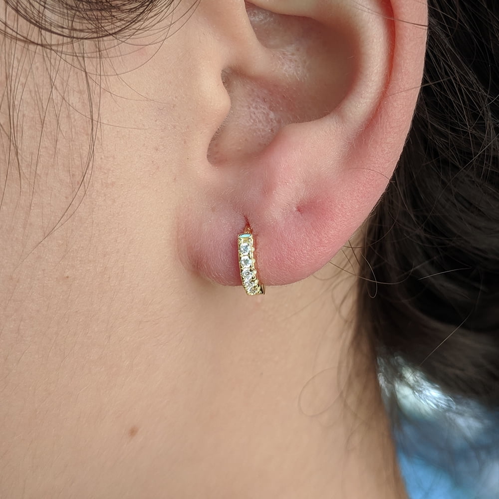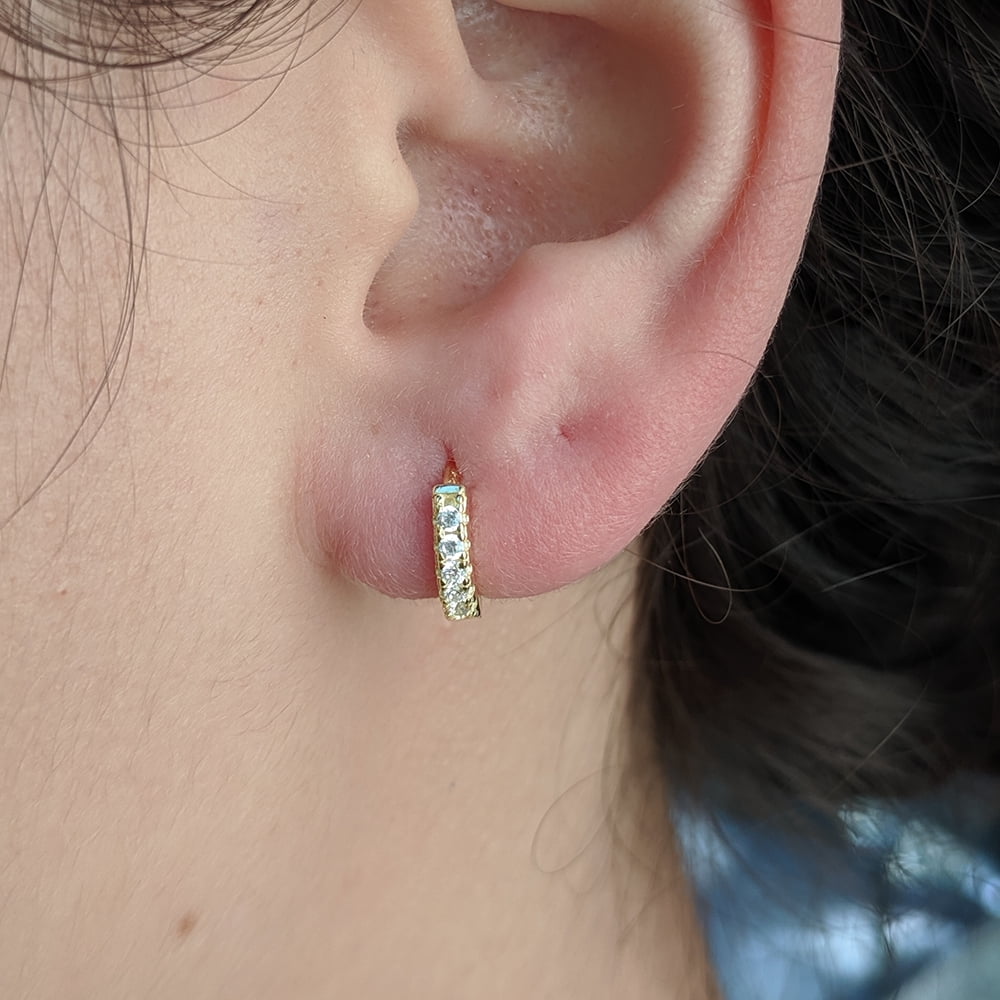 TwoBirch Round Cut Prong Set CZ Diamond Simulant Huggy Hoop Earrings Tiny Earrings Hoop Earrings for Women Girls 14k Yellow Gold Plated – These adorable mini Small Hoops are cute and perfect for every day wear. They feature a single row of AAA+ quality cubic zirconia set in solid sterling silver with 14k yellow gold plating to avoid tarnish.TwoBirch Round Prong Set CZ Diamond Simulant Small Hoop Earrings for Women 14k Yellow Gold Plated Silver