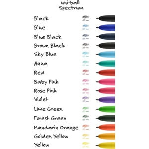 The Spectrum Gel Pen with a 0.7mm tip features a rounded, edgeless tip that reduces friction against paper for smooth, friction-free lines. Gel ink is resistant to fading and water to help you compose archival-quality documents. Sleek barrel and smooth grip let you write longer whenever inspiration strikes. Convenient clip secures tightly to various locations to ensure this pen is always at hand.uni-ball Spectrum Gel Pen