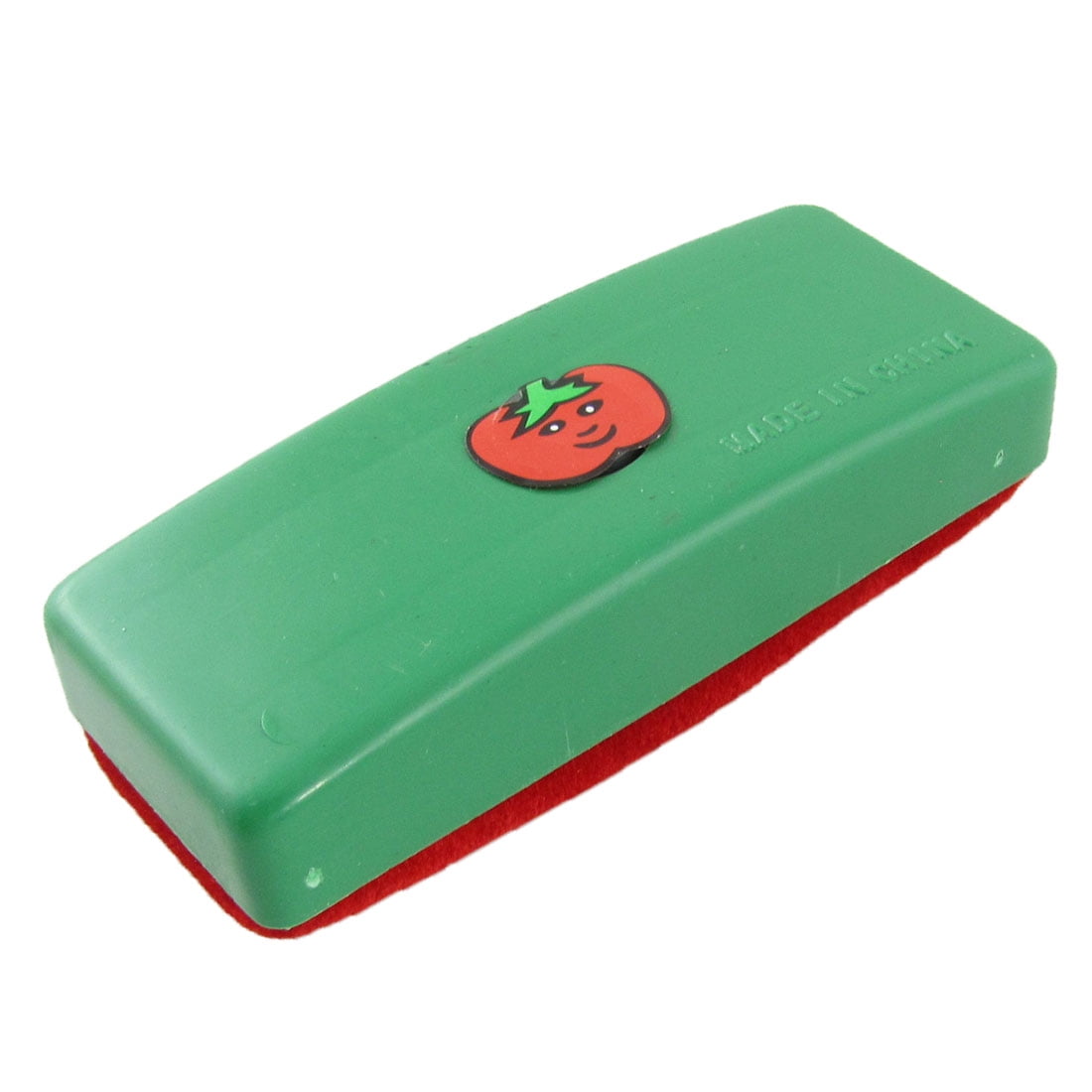 Magnetic cartoon tomato so that you can attach it to your iron chalkbord to keep the eraser in place.This red green rectangle eraser is for using with chalkboard.