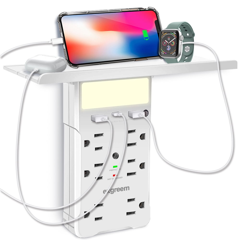 USB Outlet Shelf Night Light – Shelf & Multi Plug Outlet Extender with Surge Protector,6 in 1 Multi Plug Outlet Extender