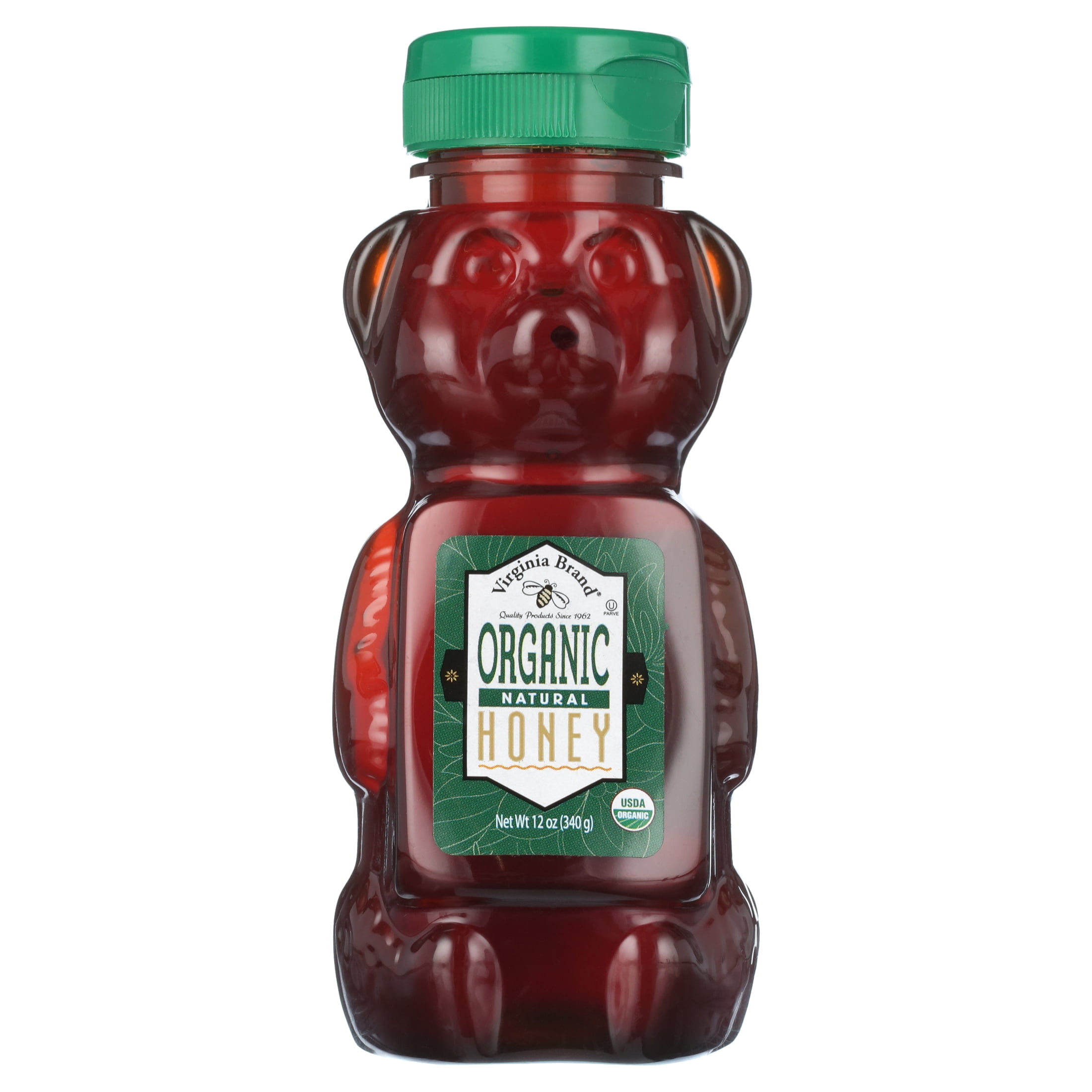 Virginia Brand® Organic Natural Honey. USDA Organic. Non GMO Project verified. Recyclable PET Bear container.
