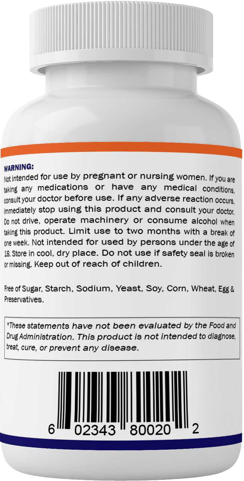- Free of sugar, starch, soy, yeast, corn, wheat, egg, artificial color, flavor, & preservatives.