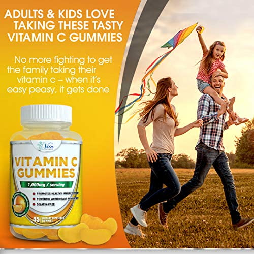 BOOST YOUR IMMUNE SYSTEM WITH MOST POTENT 1000MG VITAMIN C GUMMIES – Assist your body during cold season with these highly potent and very tasty chewable vitamin c gummies SUPPORT FOR THE COLD AND ALLERGY SEASONS – Assist the immune system from these seasonal burdens and help recover even faster SAFE AND DR RECOMMENDED DOSE VITAMIN C GUMMIES FOR ADULTS AND KIDS – Most competitor brands are 250mg or 120mg and some way less potency – Here you get full vitamin c 1000 mg ADULTS AND KIDS LOVE THESE YUMMY ORANGE FLAVORED VITAMIN C GUMMIES – Also has very high absorption rate up to 3 times faster than chewable tablets capsules or pills and zinc lozenges MAY HELP YOUR IMMUNE SYSTEM FIGHT OFF BACTERIA, VIRUSES, INFECTIONS, COLDS – Acts as immune support by boosting the immune system – Includes Ginger Extract, manganese, magnesium, Vitamin A, Vitamin E, and much moreVitamin C Gummies 1000mg – With Zinc Potent Immune Support Chewable Gummy Orange Flavor (1 Pack)