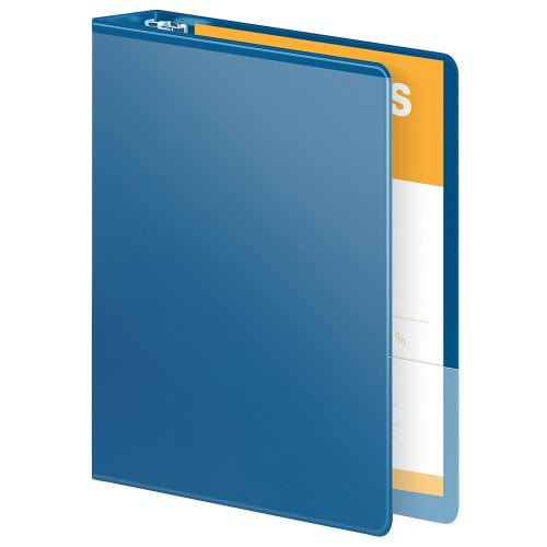 Wilson Jones Heavy Duty Binders feature an extra durable hinge and are made of custom formulated, PVC Free polypropylene. Polypro binders last up to 10X longer than vinyl binders. Clear view covers and spine allow quick and easy binder customization. The 1-1/2 inch binder size holds 350 sheets and has 4 interior pockets. Available in a wide variety of colors, Heavy Duty binders are built to last and come with a 1-year performance guarantee.Wilson Jones Heavy Duty Round Ring View Binder with Extra Durable Hinge, 1.5 Inch, Customizable, PC Blue (W363-34-7462)
