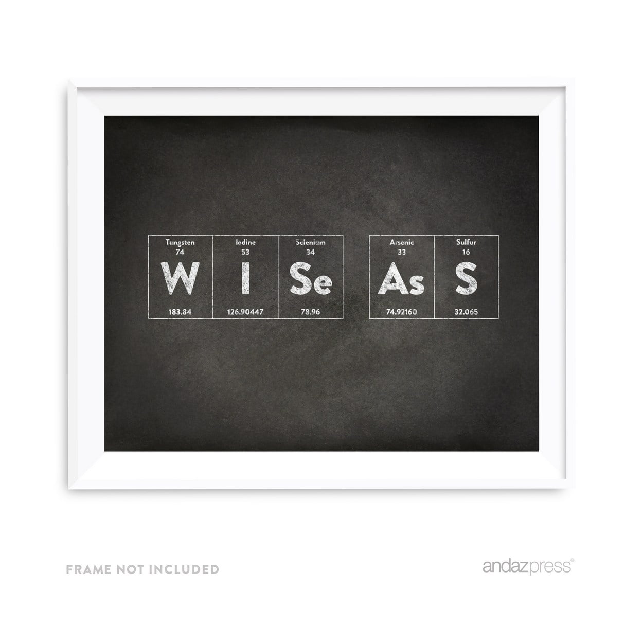 Includes: 1 periodic table chalkboard wall art print for home and office decor. Frame sold separately, not included Periodic Table Wall Art Sign Size: 8.5inch x 11inch. Properties: Matte finish. Singlesided professional high resolution print on heavy cardstock Digitally printed on high quality cardstock paper with bold vibrant colors. Actual colors may vary from the colors on your screen due to different monitor settings Exclusively designed by Andaz Press. Made in the USA. All images and designs are copyrighted © by Andaz PressLooking for fun and creative chalkboard wall art gifts? Check out our huge selection of geeky and nerdy periodic table wall art décor in vintage chalkboard style. Our cool chalkboard periodic table wall prints are ideal for a child’s room, master bedroom, office, or family room. This collection of high quality chalkboard periodic table prints is unframed, so you can customize as you please. Create an eye-catching backdrop in your home office or family room with our nerdy periodic table unframed prints.
