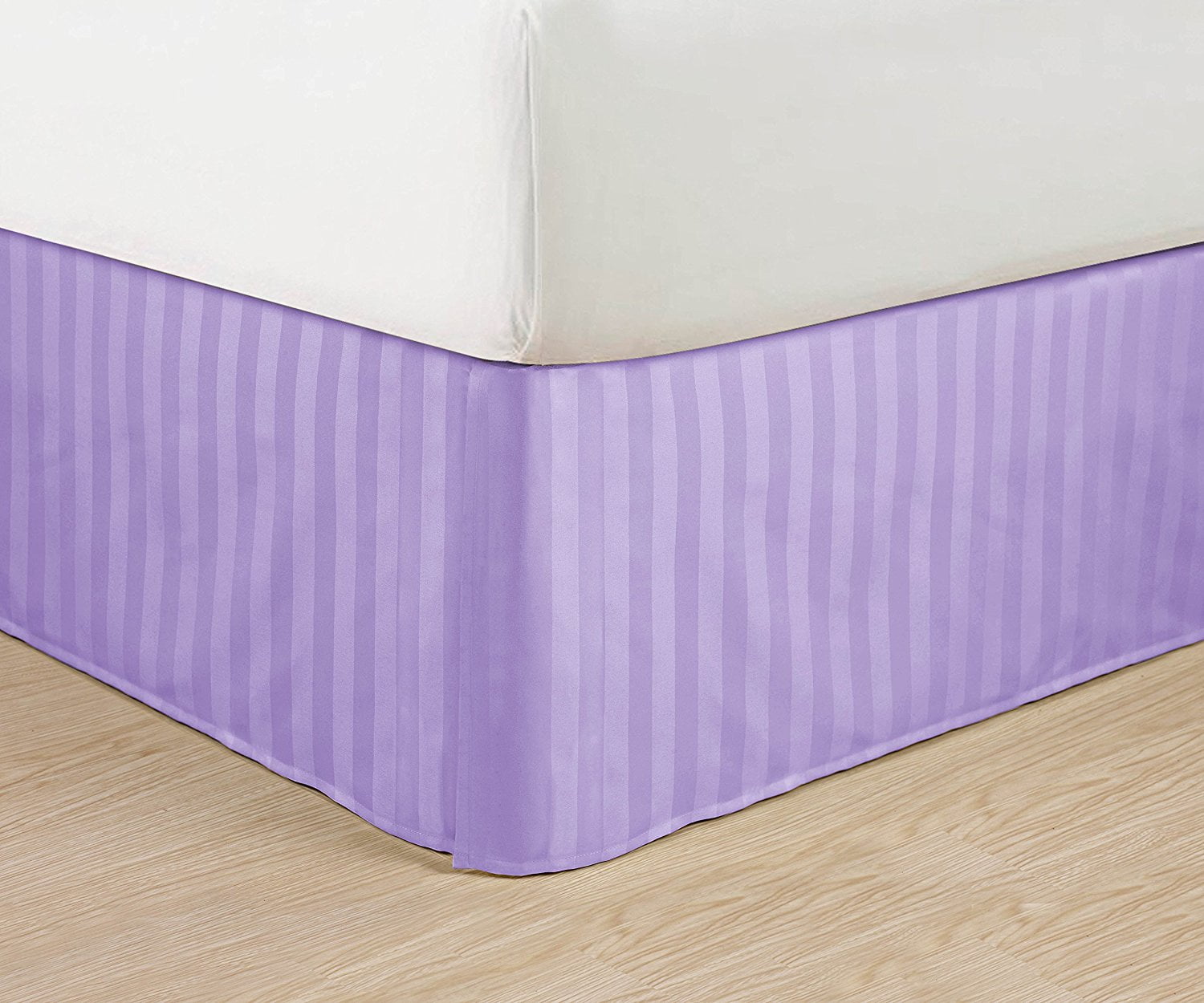 Wrinkle Free – STRIPE Bed Skirt – Pleated Tailored 14′ Drop – All Sizes and Colors , California King , Lilac