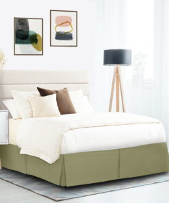 Pleated Egyptian Solid Bed Skirt Dust Ruffle Luxury Microfiber 14” Tailored Drop, Sage Green/King