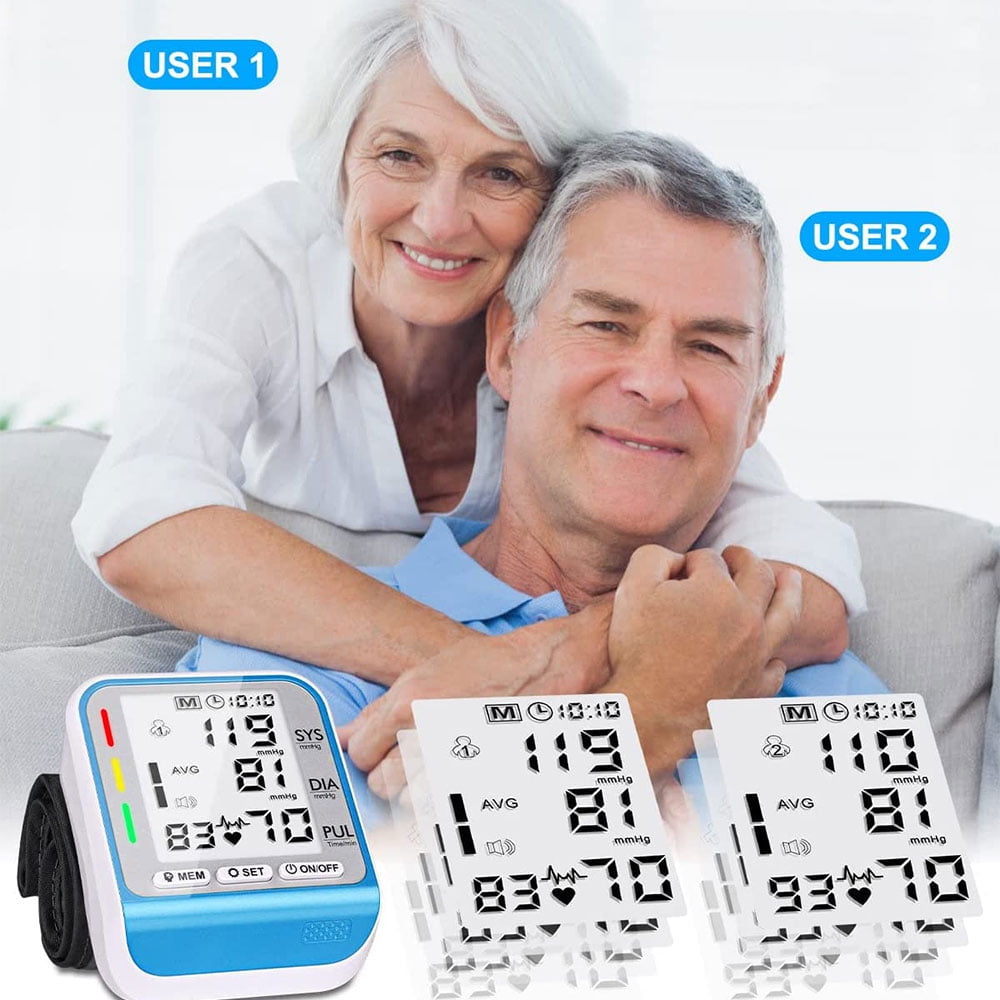 - Dual-User Mode + 99 Reading Memory – Our blood pressure monitor support 2 users with each 99 set data storage of the result with date & time stamp. Intelligently calculate the average of past 3 measurements. Helps the user recall the most recent 198 historical test readings that record the health status when they don’t have access to a medical professional, it is best gift for mom and dad.