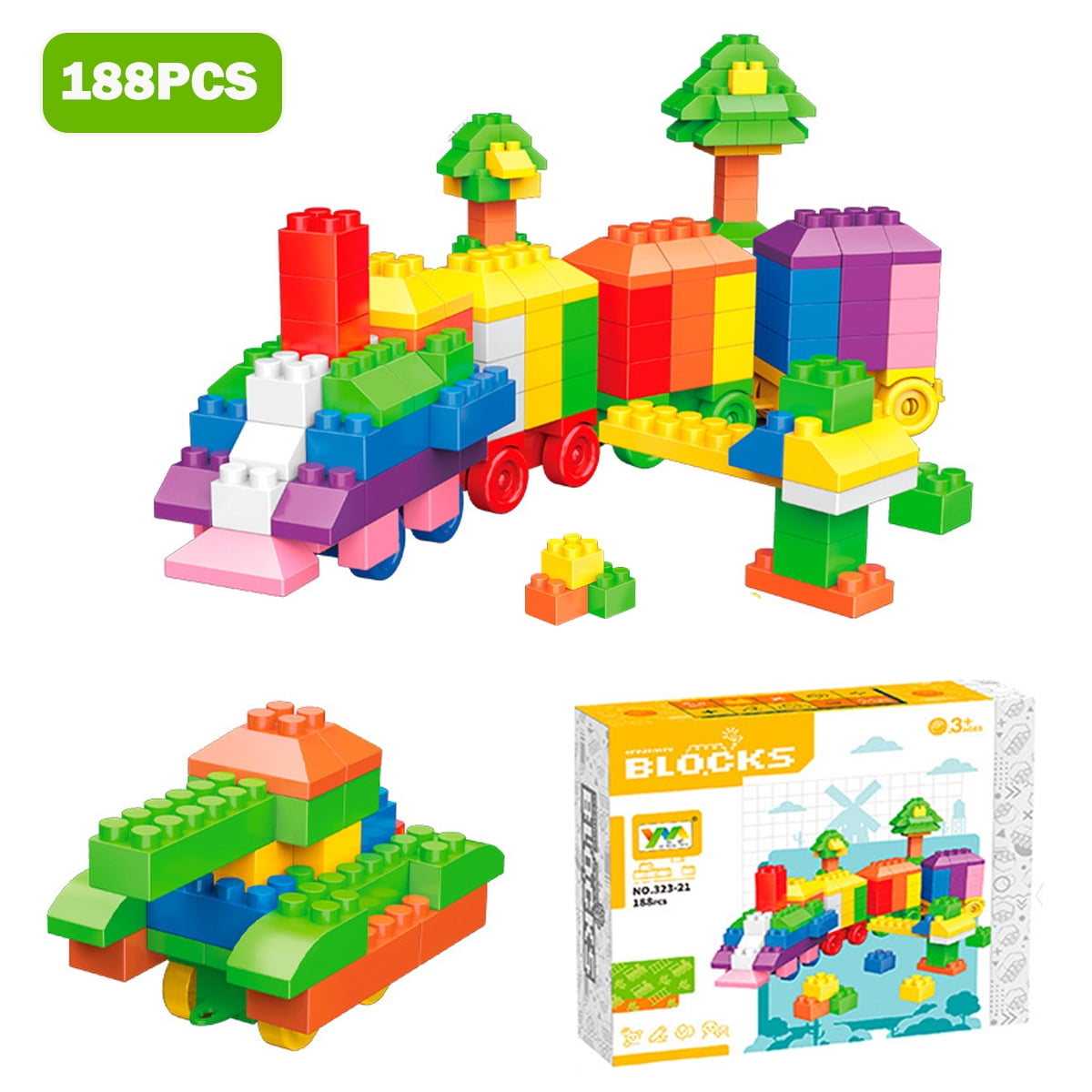 XUEYU 188 Pcs Kids Building Blocks, Toddler Blocks Preschool Building Blocks, Classic Learning Building Toys Train Building Set, for Boys Girls Gift Educational Assembly Play Toys Set