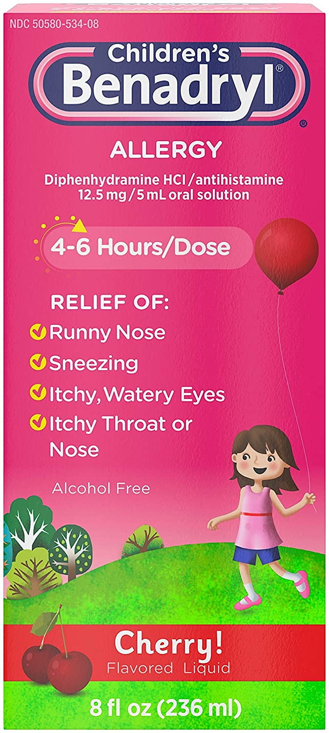 Benadryl Childrens Antihistamine Allergy Liquid, Alcohol Free, Cherry, 2 Pk, 8 oz