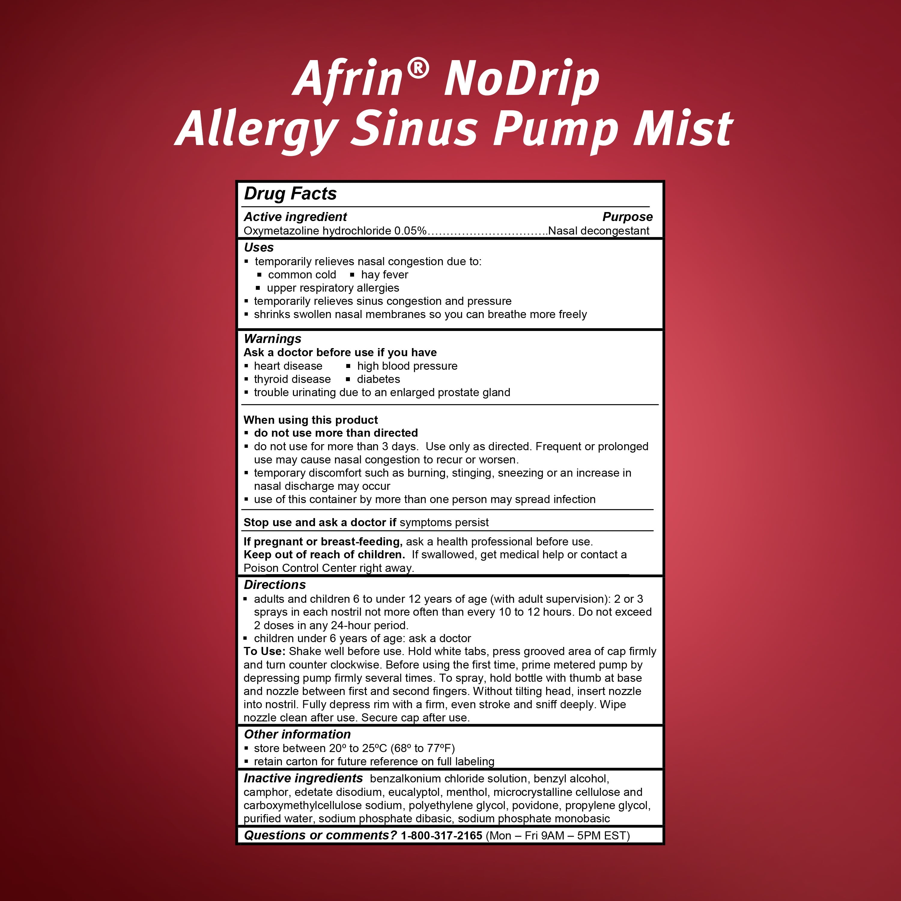 Afrin No Drip Allergy Sinus 12 Hour Nasal Decongestant Pump Mist-15mL