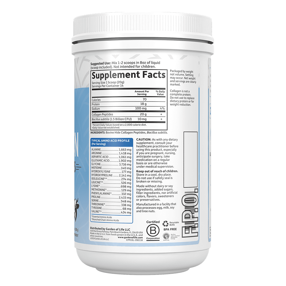 Garden of Life Grass Fed Collagen Peptides Powder | 20g Protein | 9.87oz