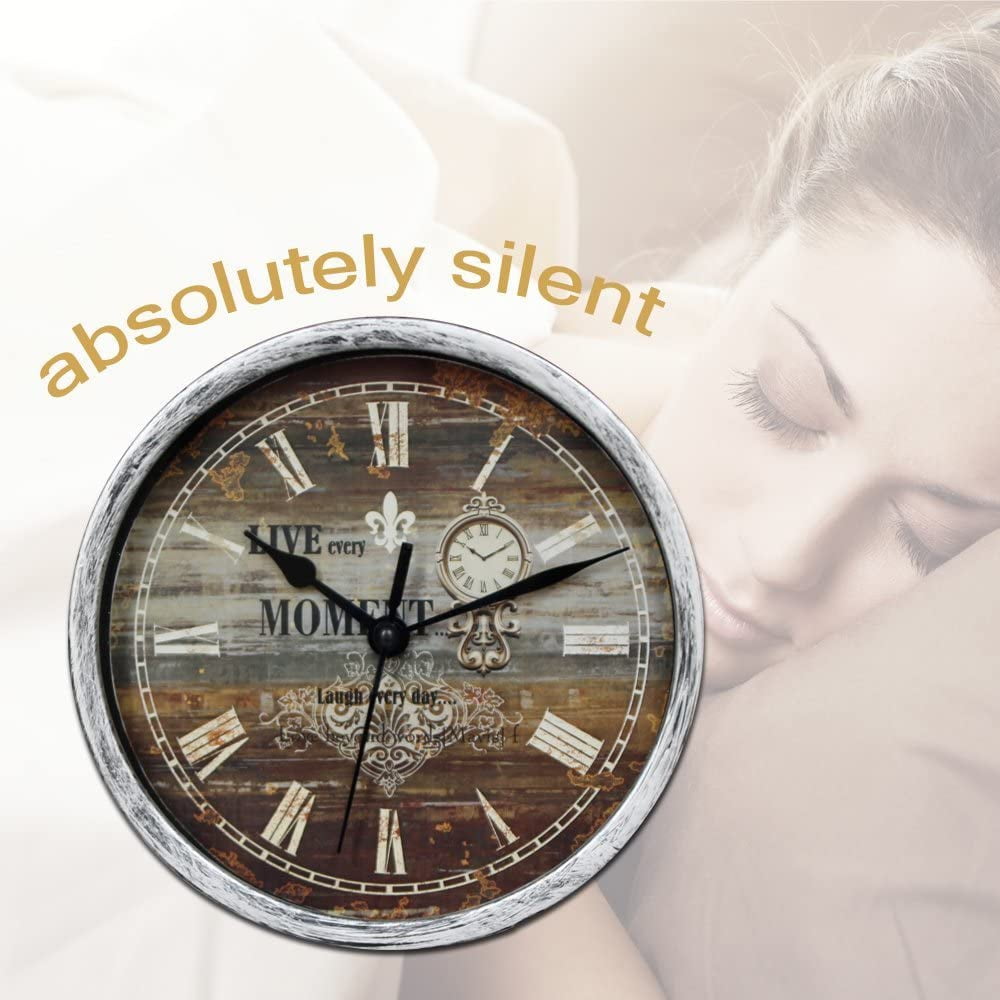 Farmhouse Wall Clocks Classic Silent Desk Clock 6′ Non-Ticking Decor Silver