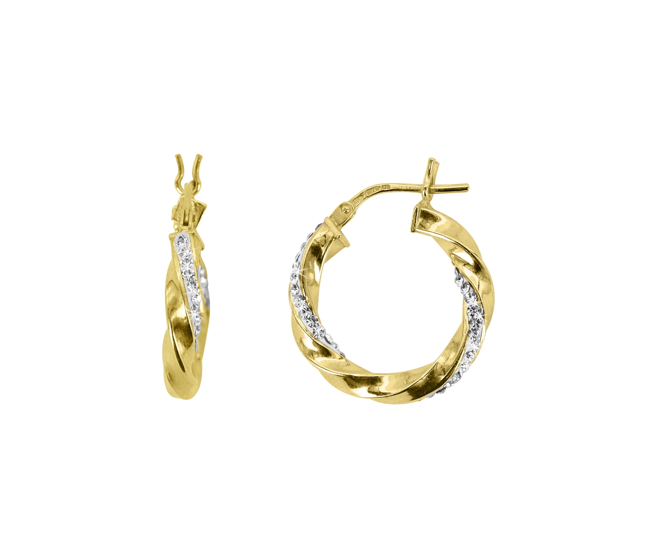 BRILLIANCE FINE JEWELRY Females 14K Gold Plated Crystal Twisted Round Hoop Adult Earrings