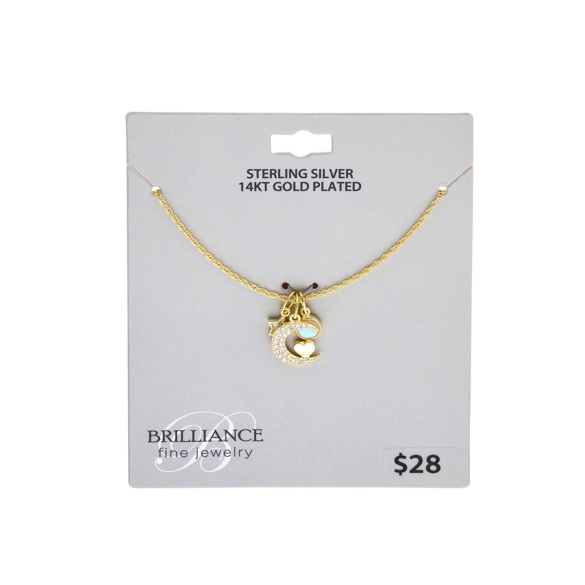 Brilliance Fine Jewelry 14KT over Sterling Moon and Star Cluster Necklace