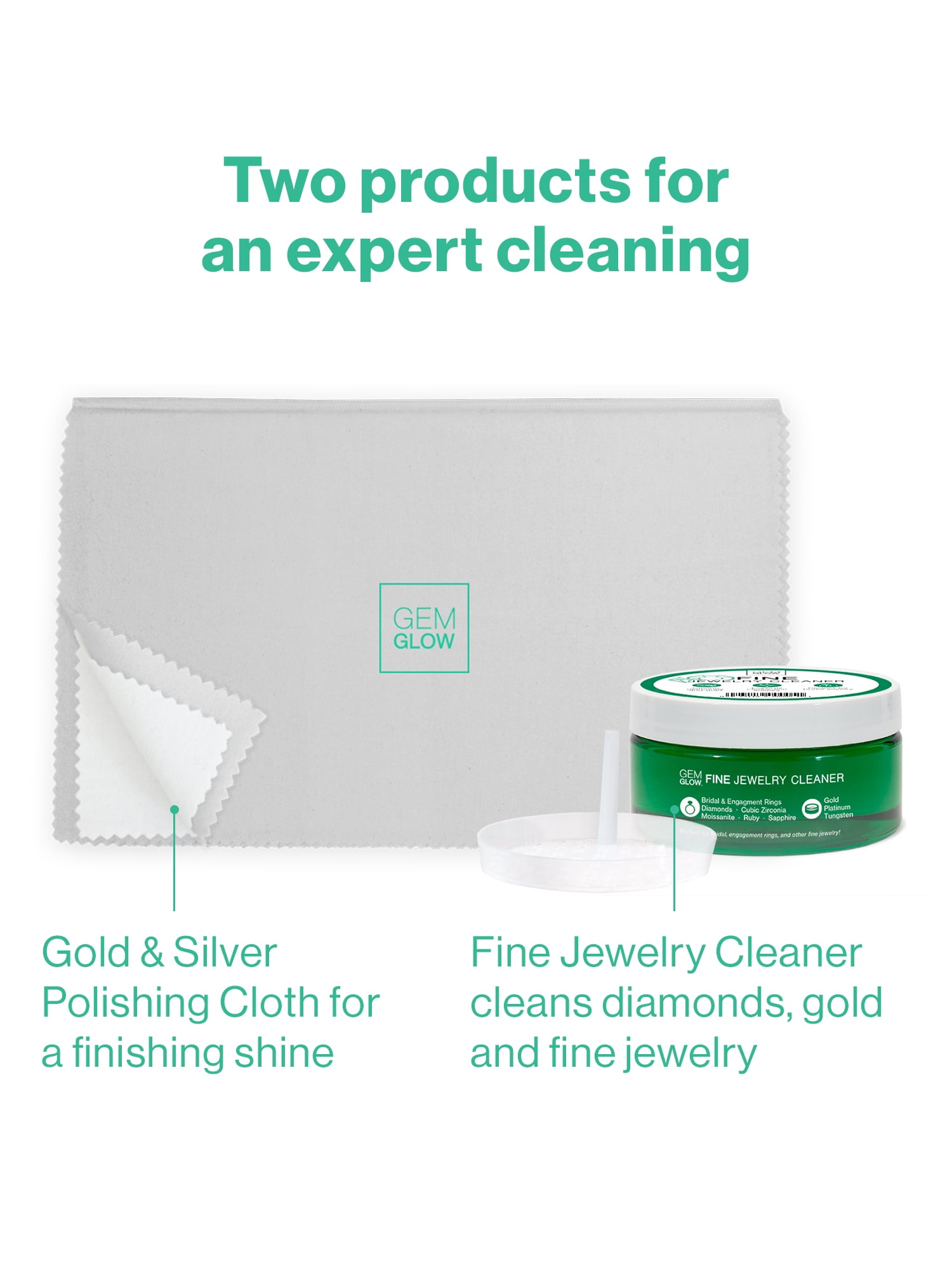Gem Glow Fine Jewelry Cleaner Kit with Polishing Cloth, Cleans Diamonds, Gold and More