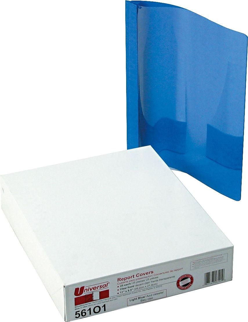 Universal Report Cover Tang Clip Letter 1/2′ Capacity Clear/Blue 25/Box 56101