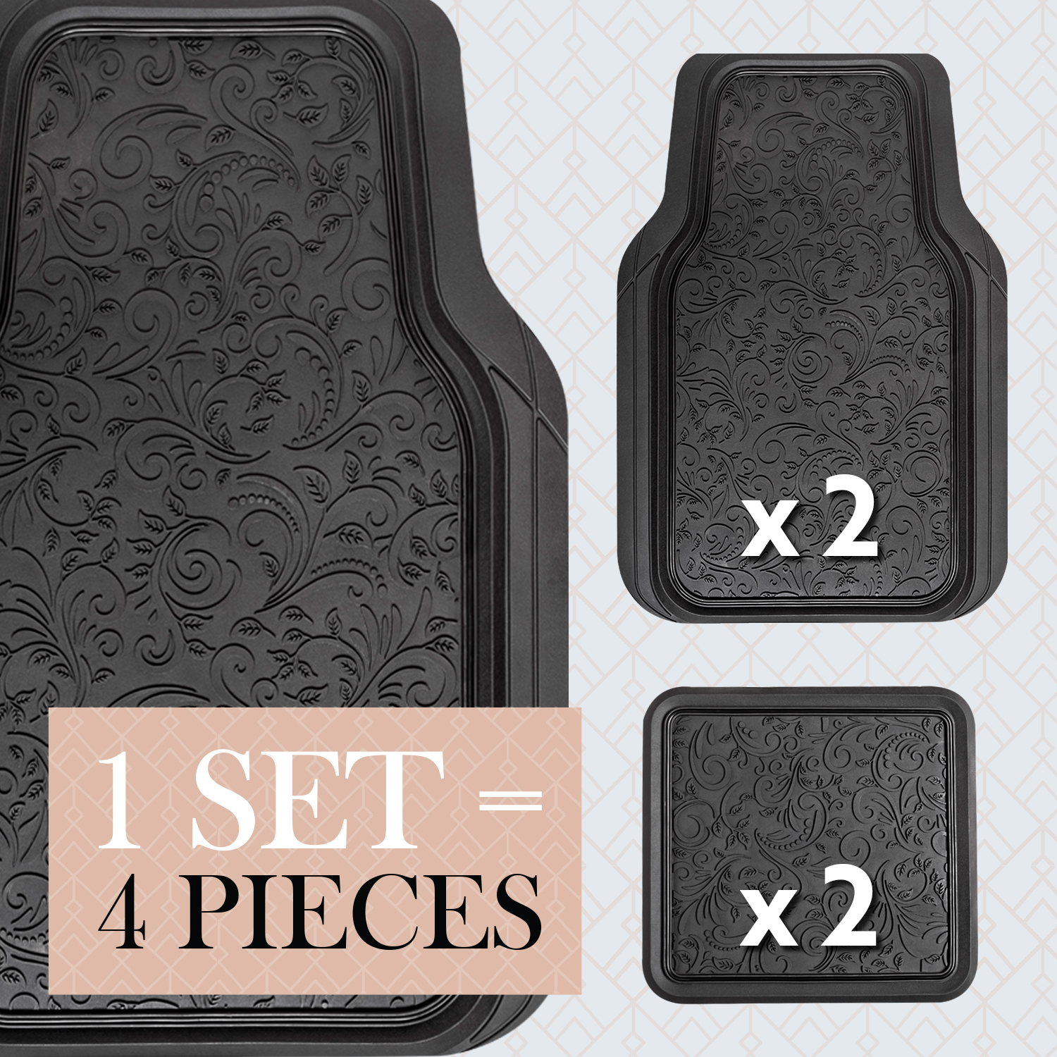 LUNNA FM-337E 4pc Aztec Black Rubber Floor Mat
