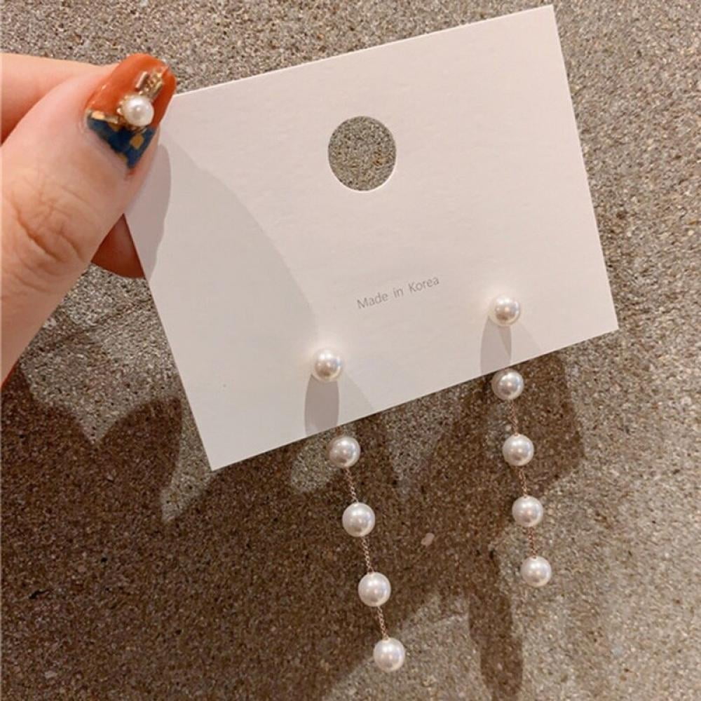 Trendy Elegant Created Big Simulated Pearl Long Earrings Pearls String Statement Drop Earrings For Women Wedding Party Gift