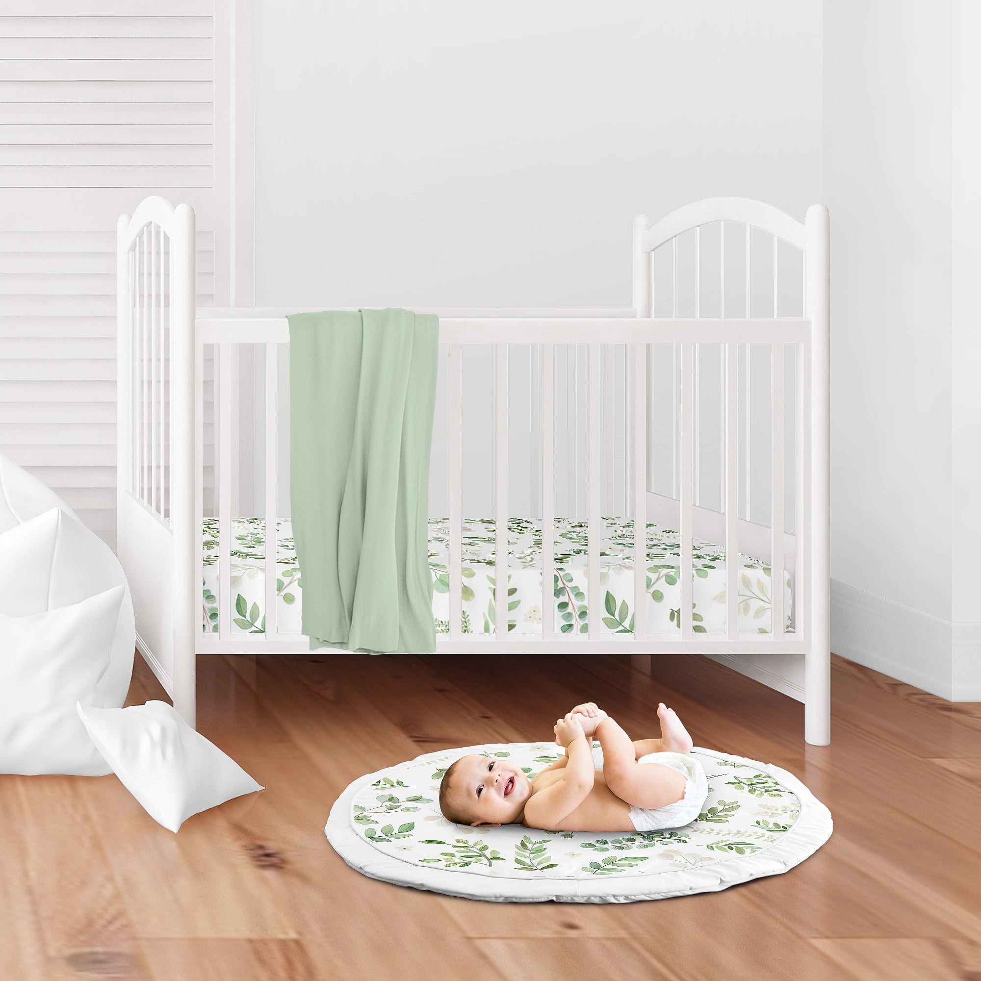 Botanical Taupe Floral Leaf Baby Play Mat by Sweet Jojo Designs