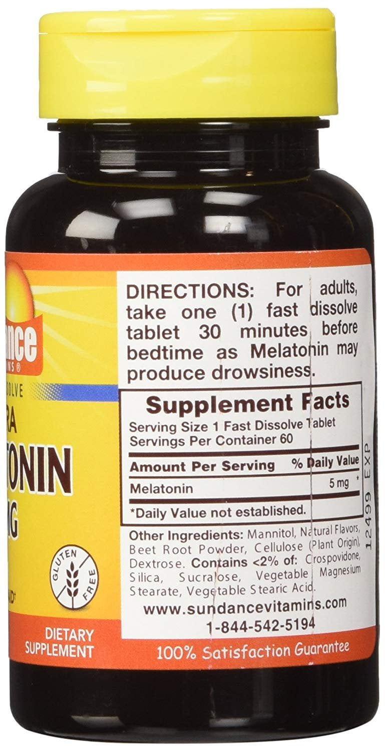 Sundance Vitamins Melatonin Natural Berry Tablets, 5 mg, 60 Count