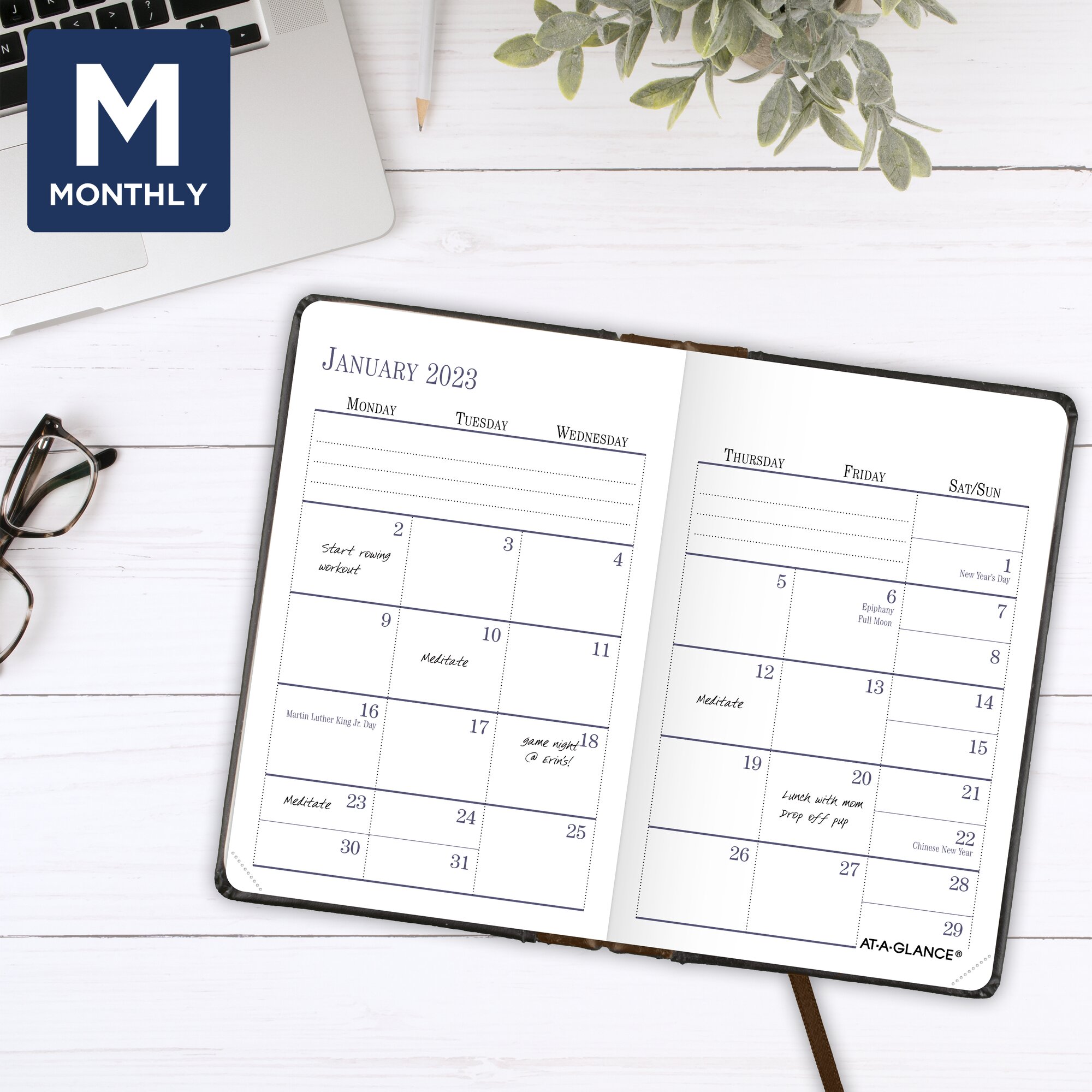 AT-A-GLANCE Contemporary Lite 2023 Weekly Monthly Planner, Black, Medium, 7′ x 8 3/4′