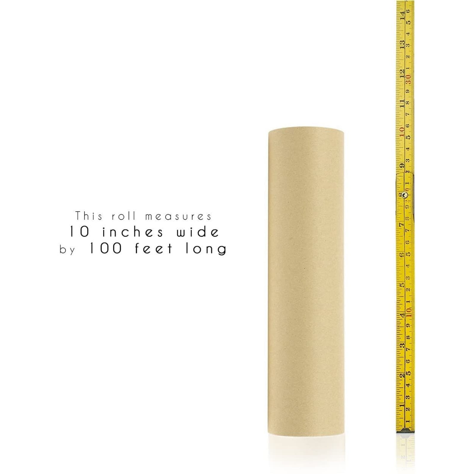 - Dimensions: This kraft paper roll is 10 inches wide and 1200 inches long (100 feet)