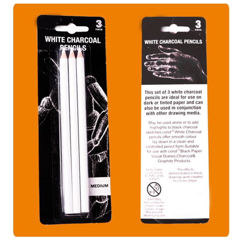 - 3pcs White Charcoal Pencils for Sketch Carbon Pens Sketch Tools Art Tools