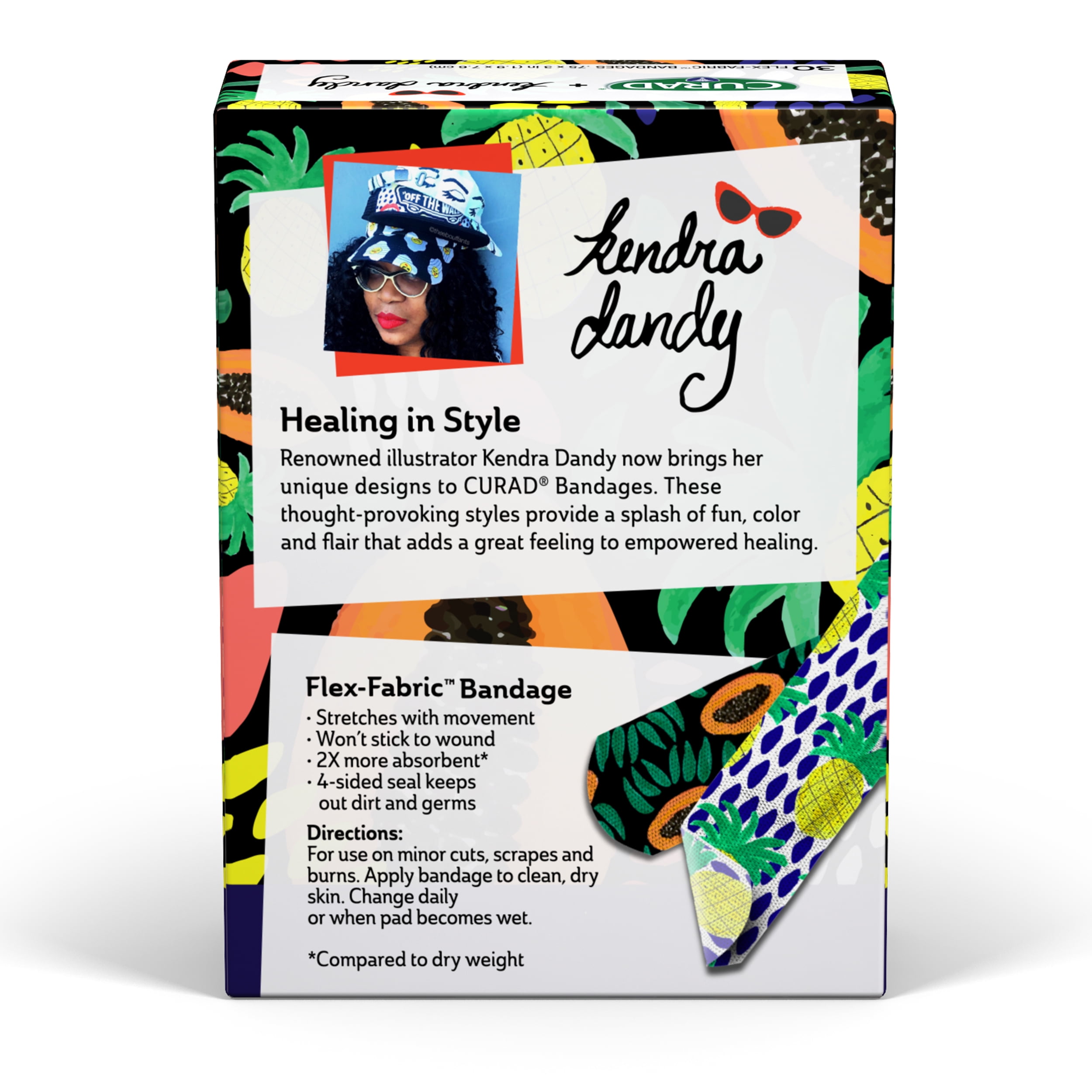Pineapples & Papayas – Standard Strip (Pack of 4). Renowned illustrator Kendra Dandy now brings her unique designs to CURAD® Bandages. These thought-provoking styles provide a splash of fun, color and flair that adds a great feeling to empowered healing.