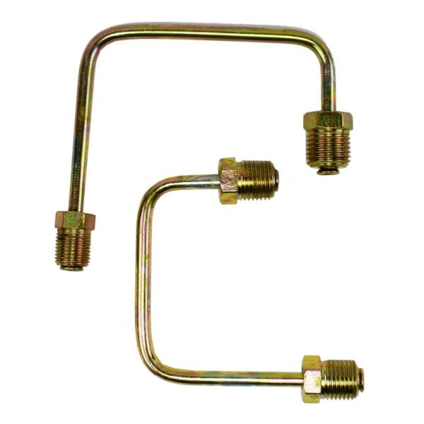 A-Team Performance Proportioning Valve Bottom Mount PV Lines Zinc Description: 1 Pair of Bottom Mount Steel Proportioning Valve Lines 3/16" Tubing, 9/16" & 1/2" fittings for ports to Master Cylinder and 1/2"-20 & 7/16"-24 inlet to proportioning valve. These lines are compatible and can be used with any of the following master cylinders and proportioning valves combinations. MC1321H MC2912H MC1321ACH MC2912ACH MC1321ACH-FT MC2912ACH-FT PV2 PV4 PV2C PV4C PV2A PV4A *Before you buy! Know either the part numbers that you are using are compatible or know your Master Cylinder and Proportioning Valve Port inlets so that you get the correct fittings! FREE SHIPPING IN THE CONTINENTAL USA!!!