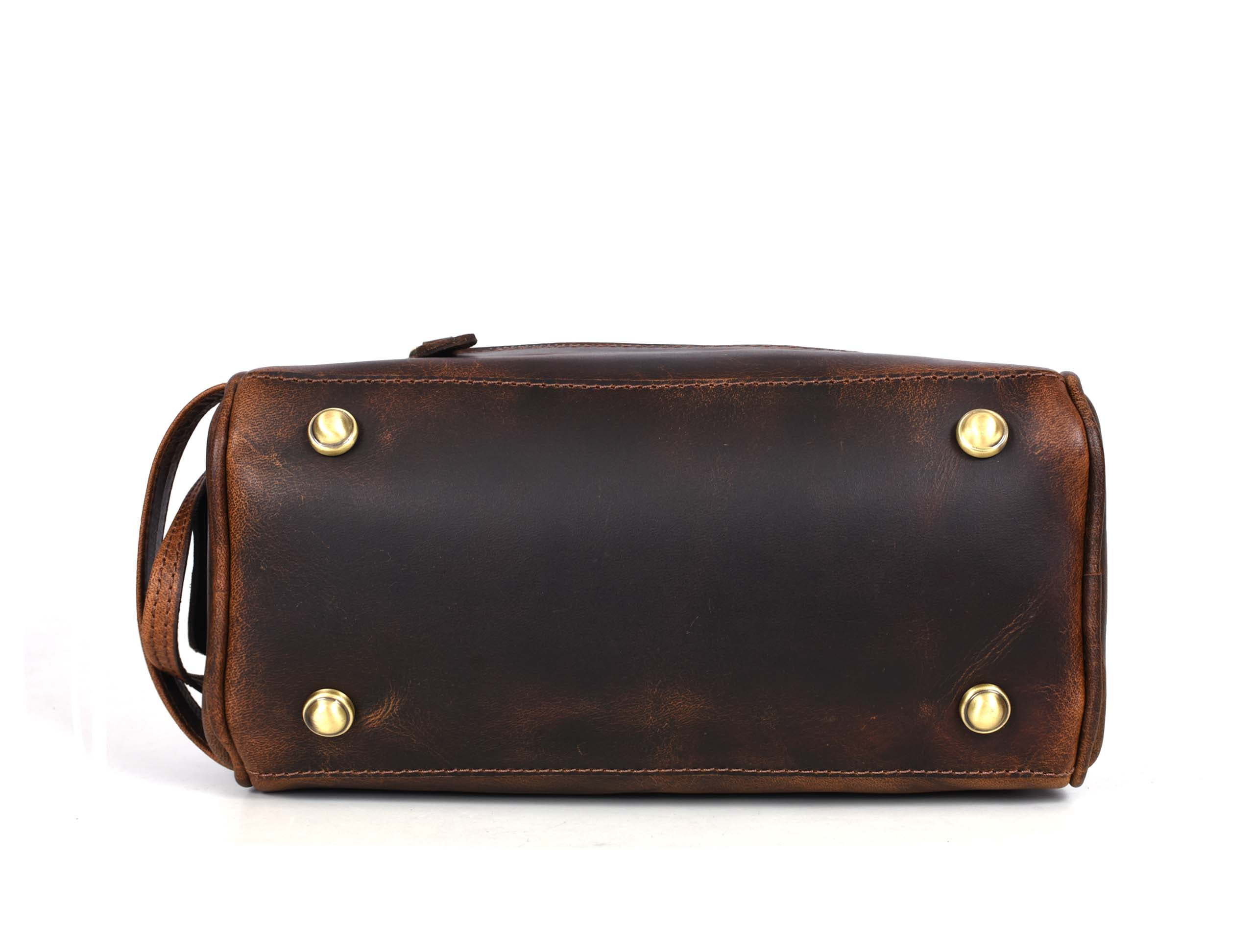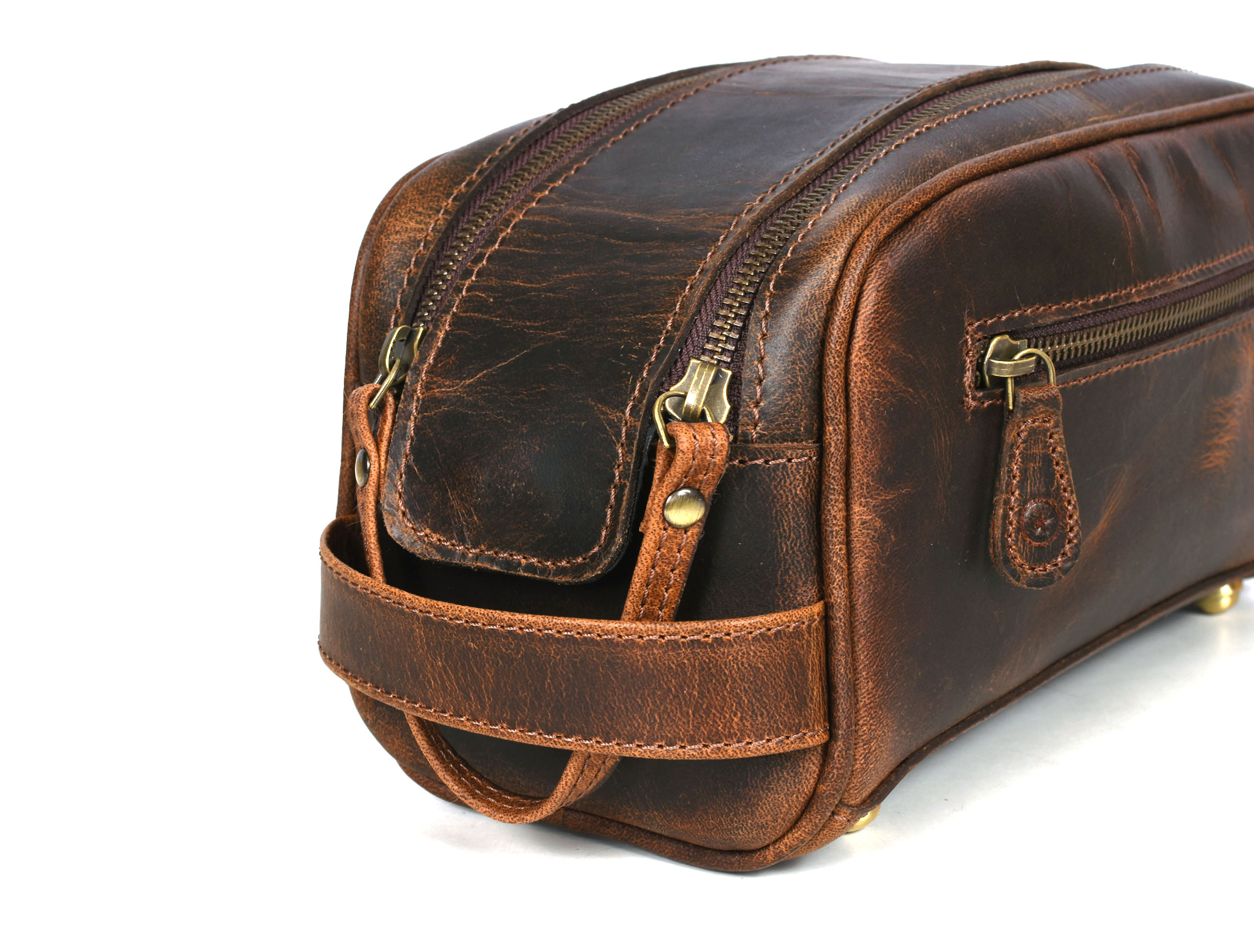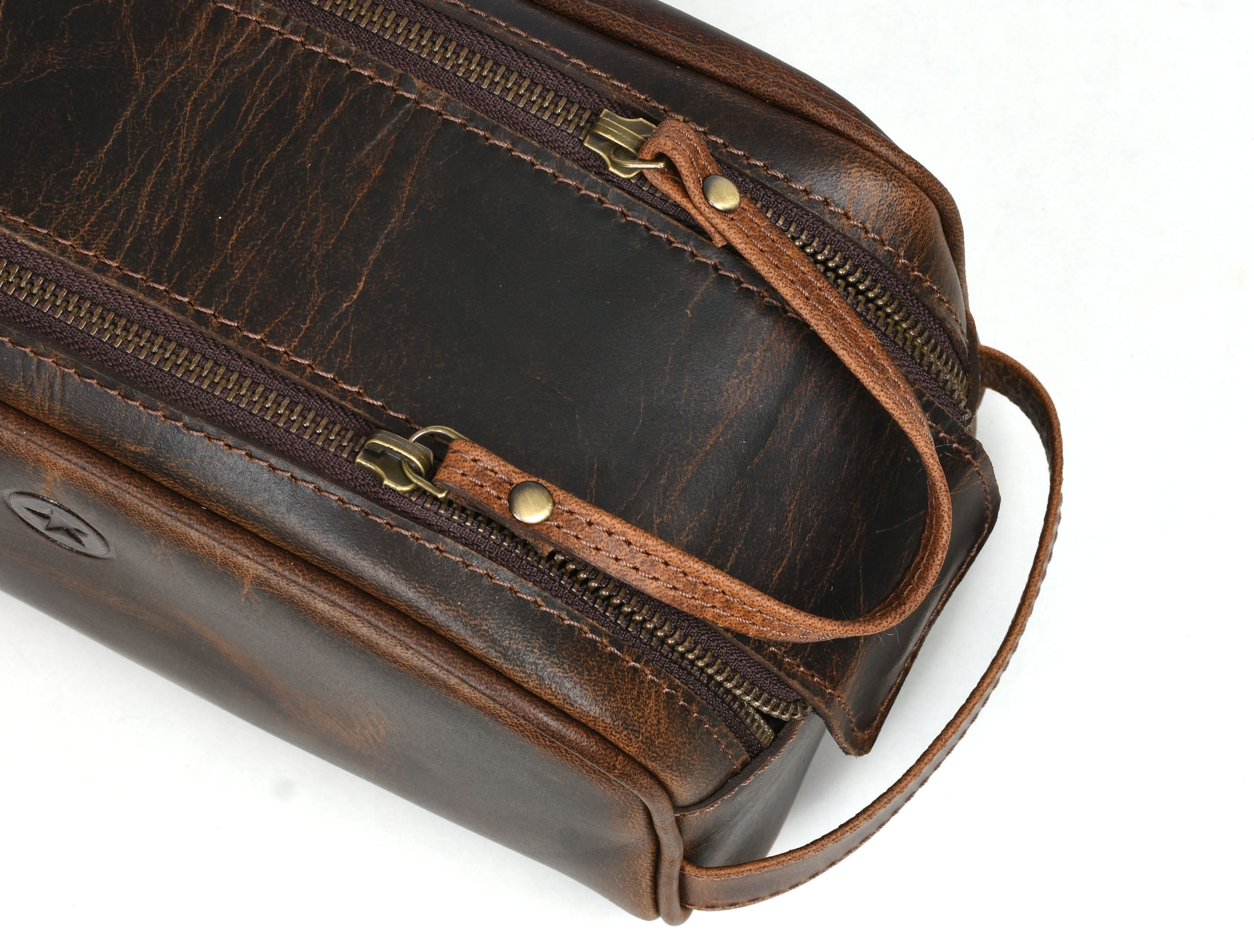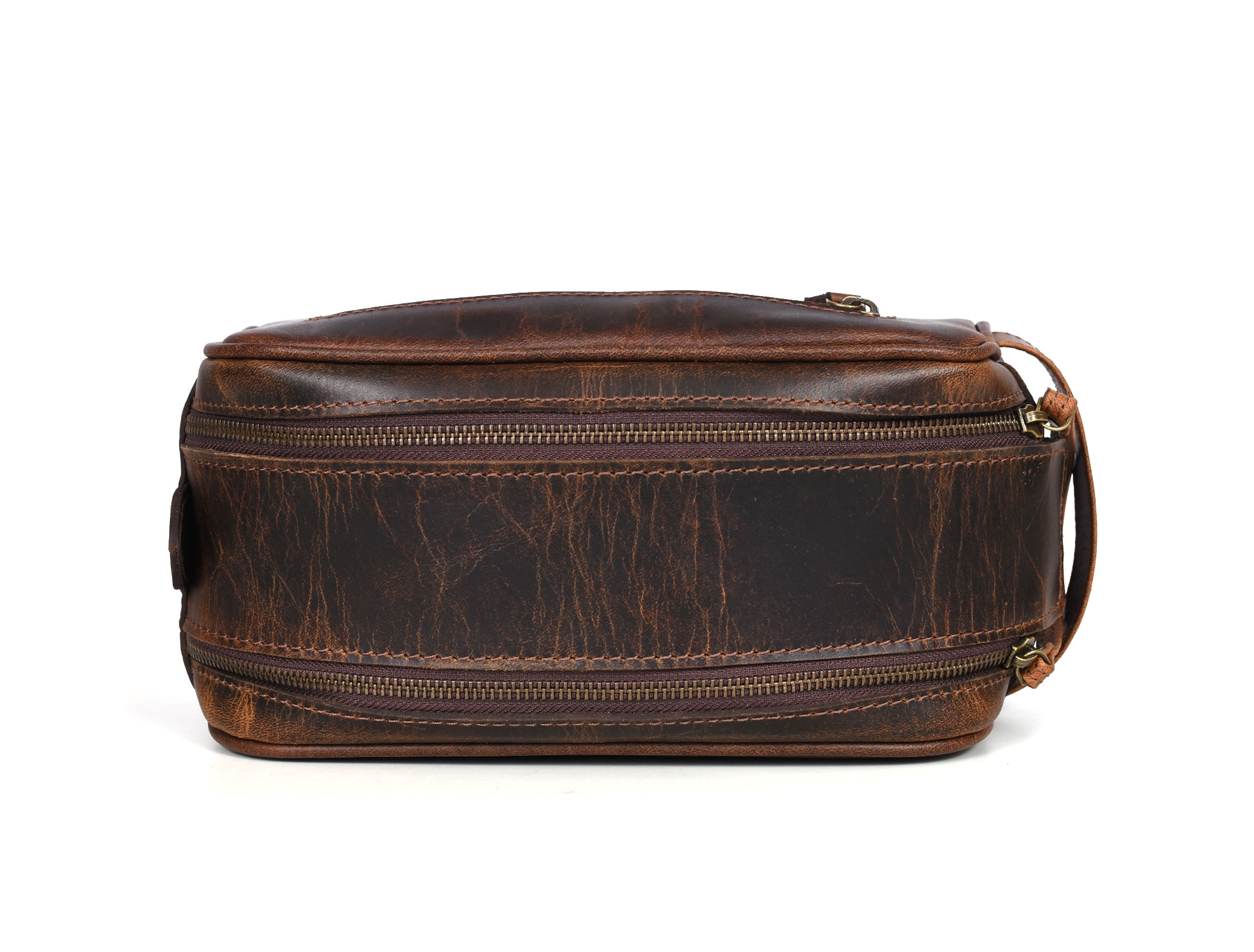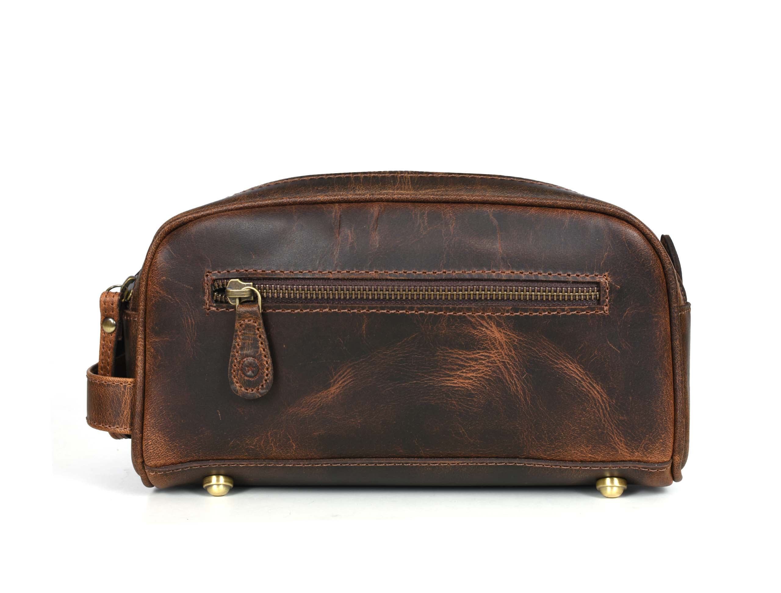 A perfect groomsmen gift from Aaron Leather goods. This Aaron Leather toiletry bag with dual zipper, large space for things like soap, shampoo, razor etc. makes it be a perfect organizer for travel or a nice gift for family and friends. The luxury men toiletry bag offers you a convenient and comfortable trip. Take this drop kit with you around the world or just place it in your bathroom or bedroom for easy accessibility. One best location for all of your essentials, keep them Clean and tidy, put you in a good mood. The toiletry bag will absolutely hold everything you need to take with you, especially for those longer trips or men who have those extra needs. It’s bigger and roomier, too with a classy, upscale look that’s right on trend. All at a surprisingly sensible cost. Our toiletry bags are made from premium crazy horse leather with heavy duty YKK metal zipper. This men’s leather drop kit is a great gift choice for any holiday or occasion: Anniversary, valentine’s Day, father’s day or birthday. High quality and handmade. An exclusive design with excellent functionality. Only the best for your husband, boyfriend, father or brother. Made from full grain premium grade leather. Dimensions: 10" x 5.5" x 5.5" (L x W x H).