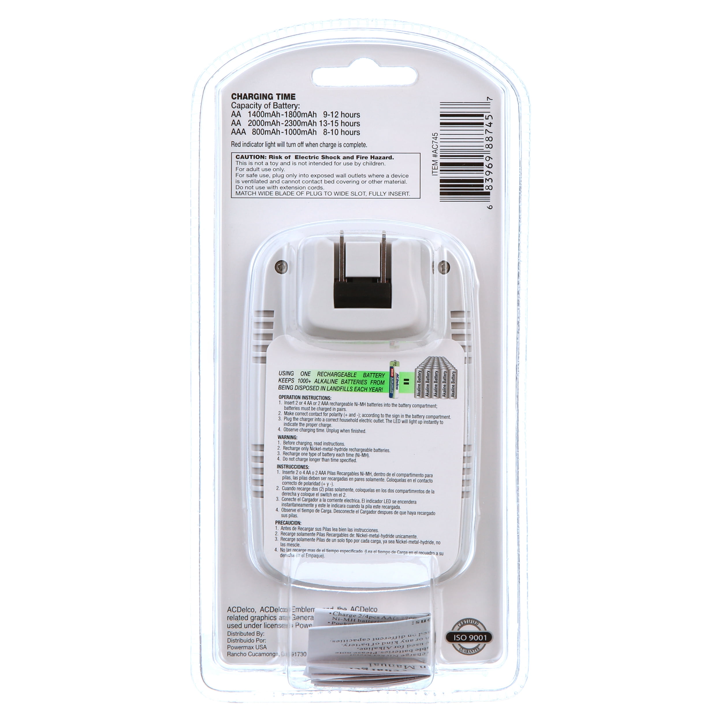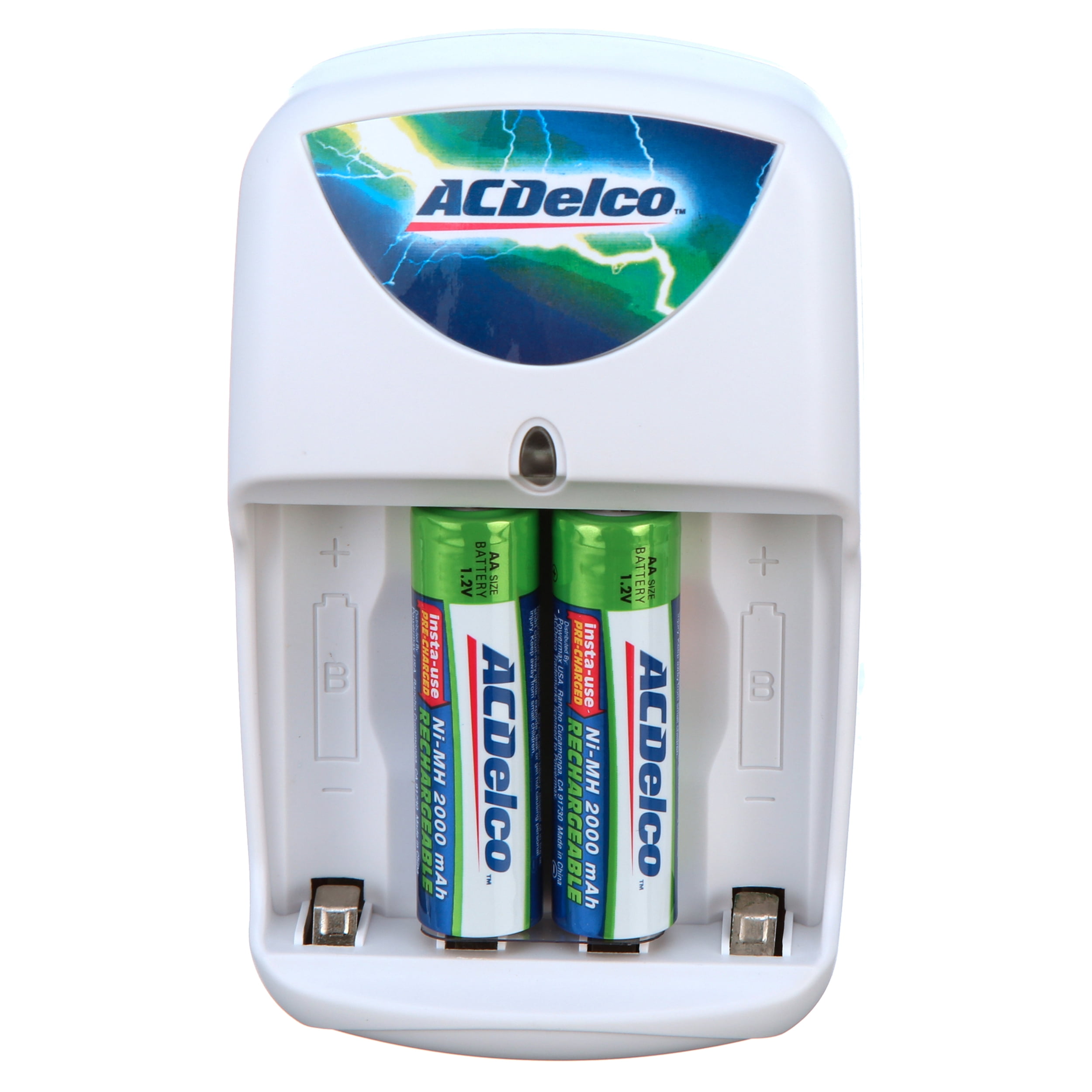 Get more out of your batteries with the ACDelco Standard Battery Charger. It’s a handy and convenient item to keep in your home, garage, workshop, office or job site. It’s suitable for batteries used with high drain devices like game controllers, digital cameras, power tools, remotes and more. This ACDelco rechargeable battery charger has four slots and charges up to four AA or AAA rechargeable Ni-MH batteries. An LED light indicates the proper charge and when charging has been completed. The ACDelco Standard Battery Charger also has built-in features that protect batteries from wrong polarity charging, as well as overcharging. It comes with a set of pre-charged Ni-MH 2000 mAh AA rechargeable batteries for your convenience.ACDelco Standard Battery Charger for AA and AAA Rechargeable Batteries:
