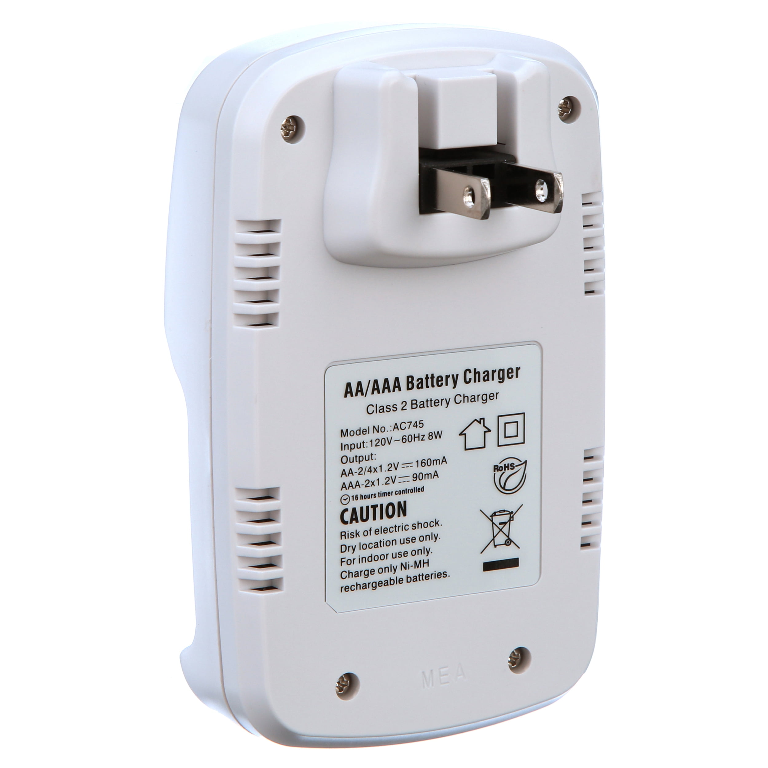 - Standard rechargeable battery charger for AA and AAA rechargeable batteries
