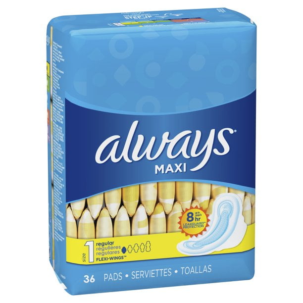 Have confidence during your period along with plenty of protection with the Always Maxi Size One Regular Pads with Wings Unscented. Each of these can easily be placed on panties to help avoid leakage with its unique LeakGuard protection. These Always Maxi regular pads with wings also have the softest Dri-Weave for a comfortable feel that can last up to eight hours throughout the day. They come in a 36-count and a pack of four, so you can have plenty to last through your flow. Being a woman just got better with these simple hygiene products.