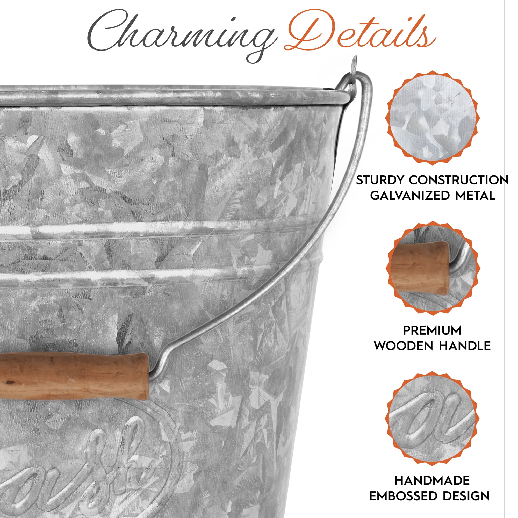 - FUN FARMHOUSE ACCESSORIES – Featuring a premium wooden handle for warm tones and embossed ring design with a label that says “Trash” in a beautiful cursive script, our galvanized trash can bathroom or small waste basket for bathroom is a sight to behold!