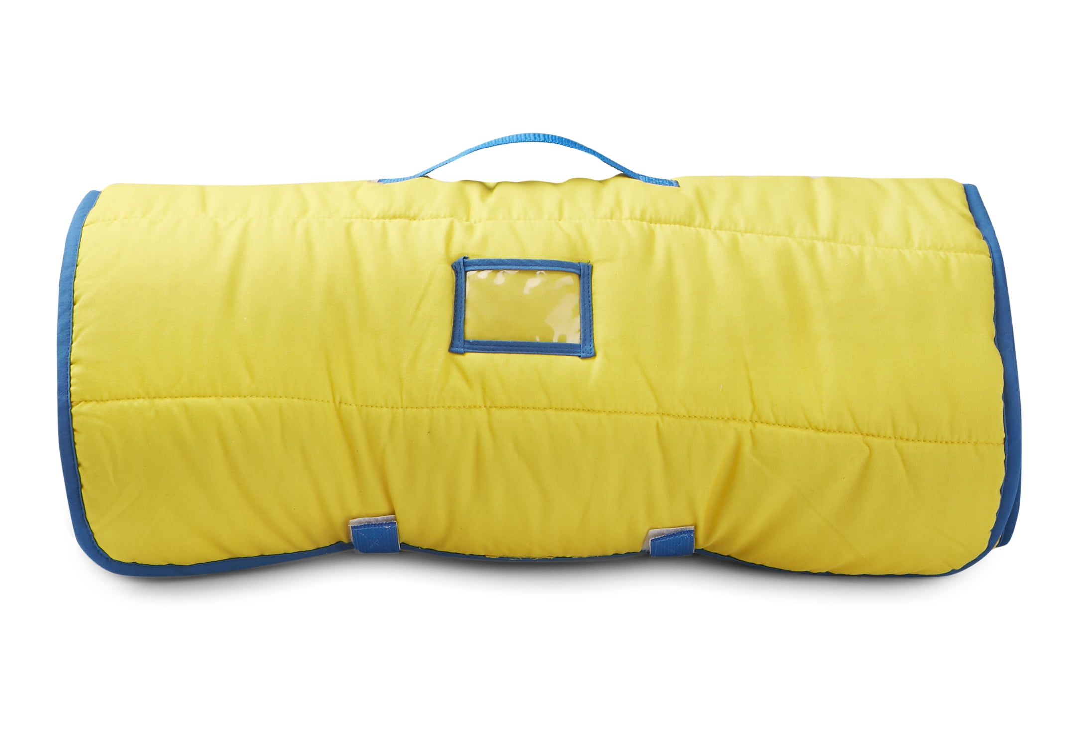 Baby Shark You’ve probably heard the Baby Shark song now you can bring the Baby Shark family into your home in a super soft and cuddly way with this toddler nap mat, perfect for naptime, sleepovers, day-care or overnight trips. A quilted mat, ultra soft fleece blanket and pillow all in one. The nap mat rolls up with Velcro close tabs and convenient carrying handle, plus it includes a tag for personalization.
