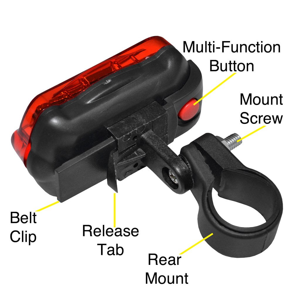 - Rear Safety Flashlight also features 5 super bright red LEDs