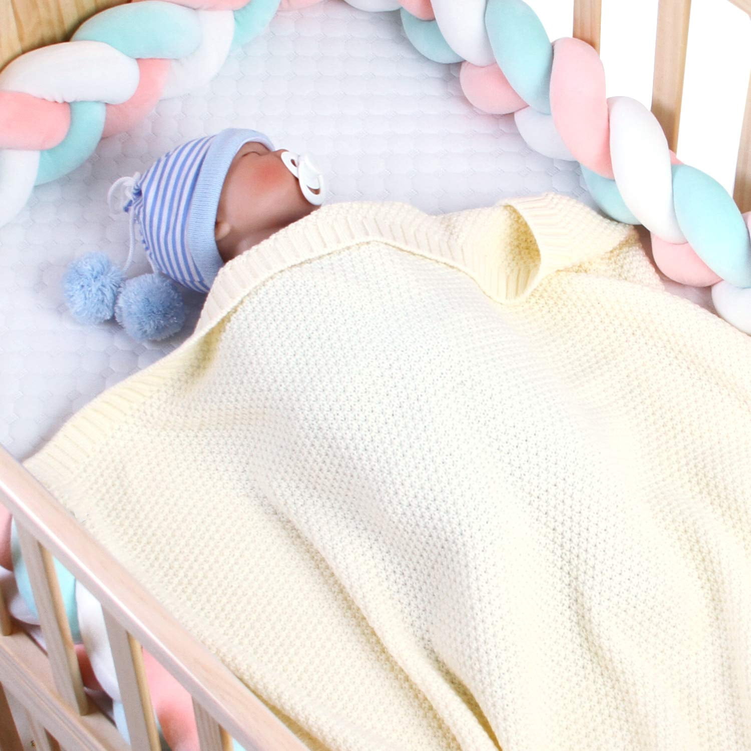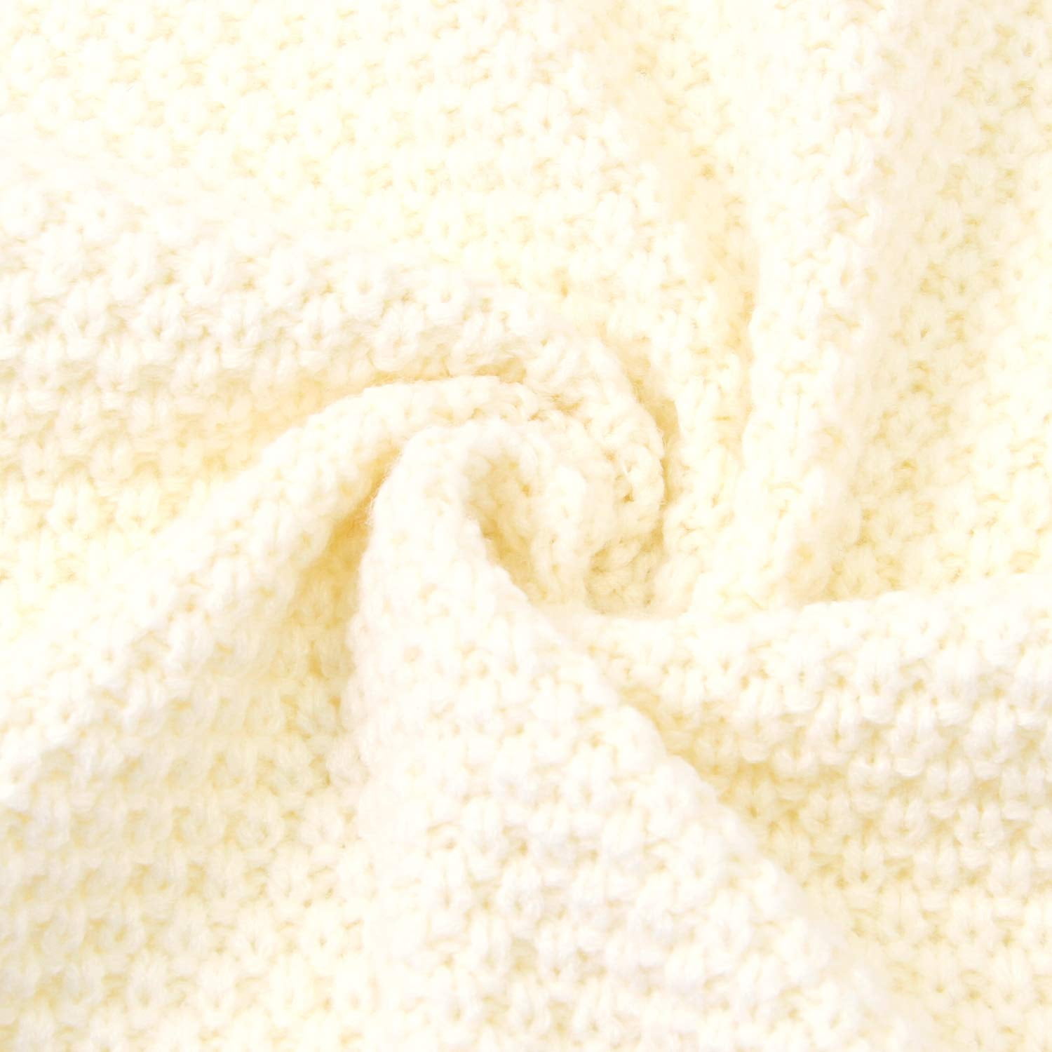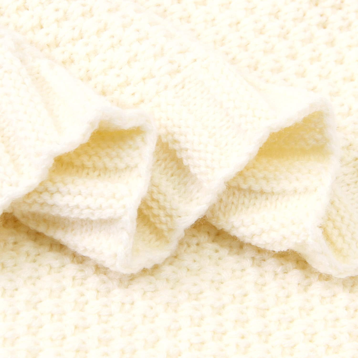 Bitsy Boo Knitted Infant Baby Blanket Swaddle for Newborn Boys Girls Kids Ivory Cotton Acrylic