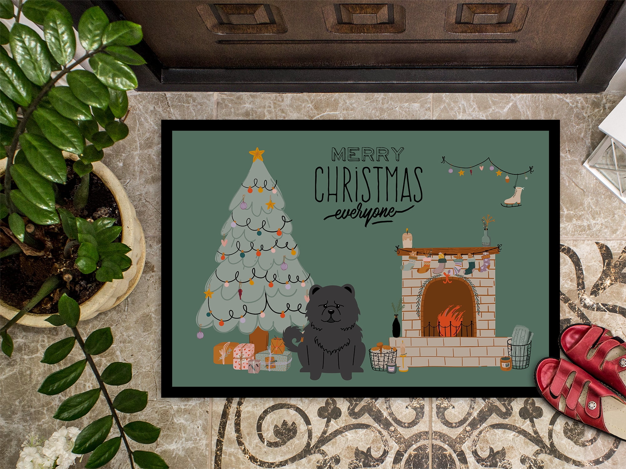 Black Chow Chow Christmas Everyone Door Mat