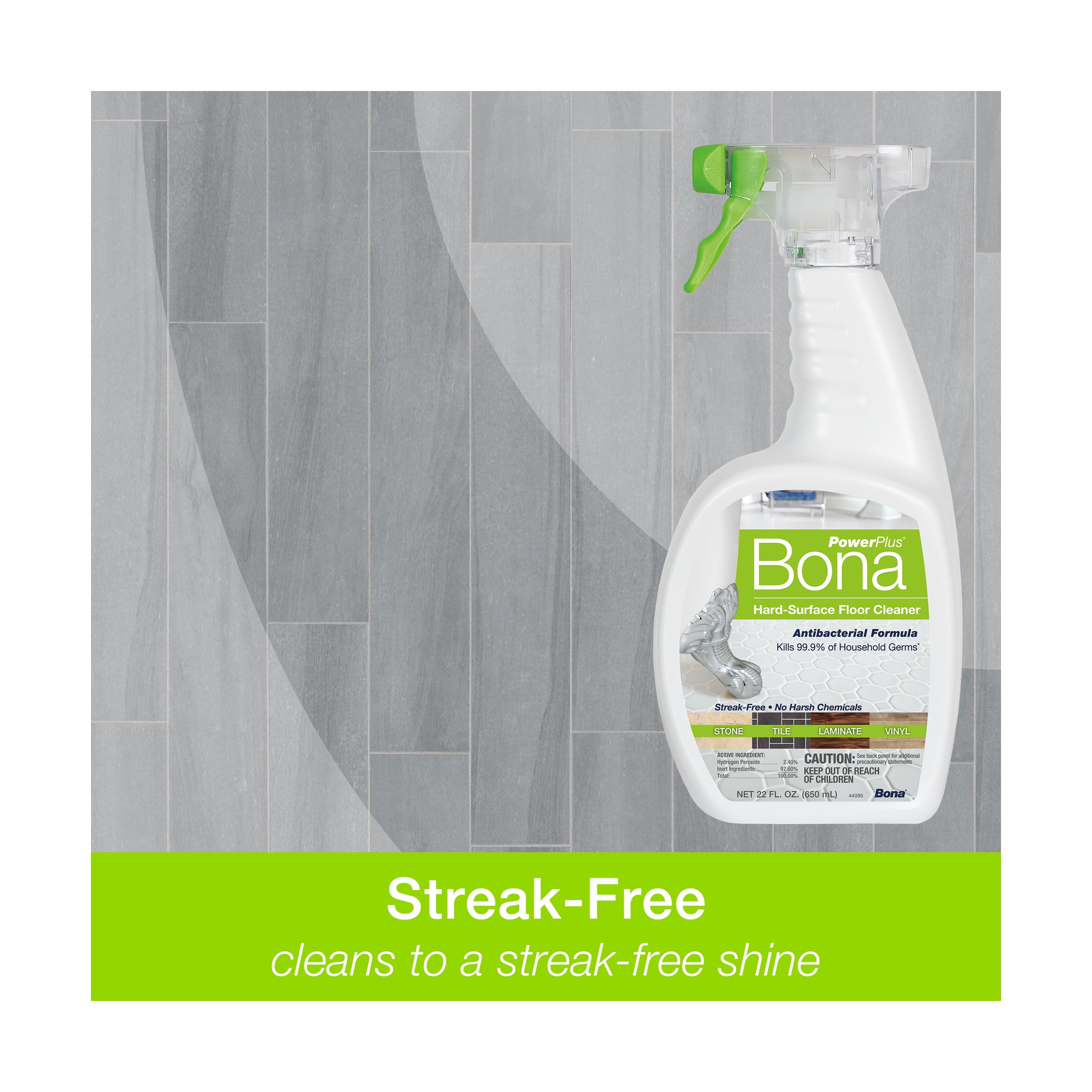 Performance you expect, with the ingredients you can trust. Clean without compromise. Bona PowerPlus Antibacterial Hard-Surface Floor Cleaner cleans and disinfects with the power of hydrogen peroxide. This ready to use antibacterial cleaner is uniquely formulated to powerfully clean and effortlessly remove stubborn stains while killing 99.9% of household germs. It leaves your home smelling clean and fresh with no harsh chemical smell.