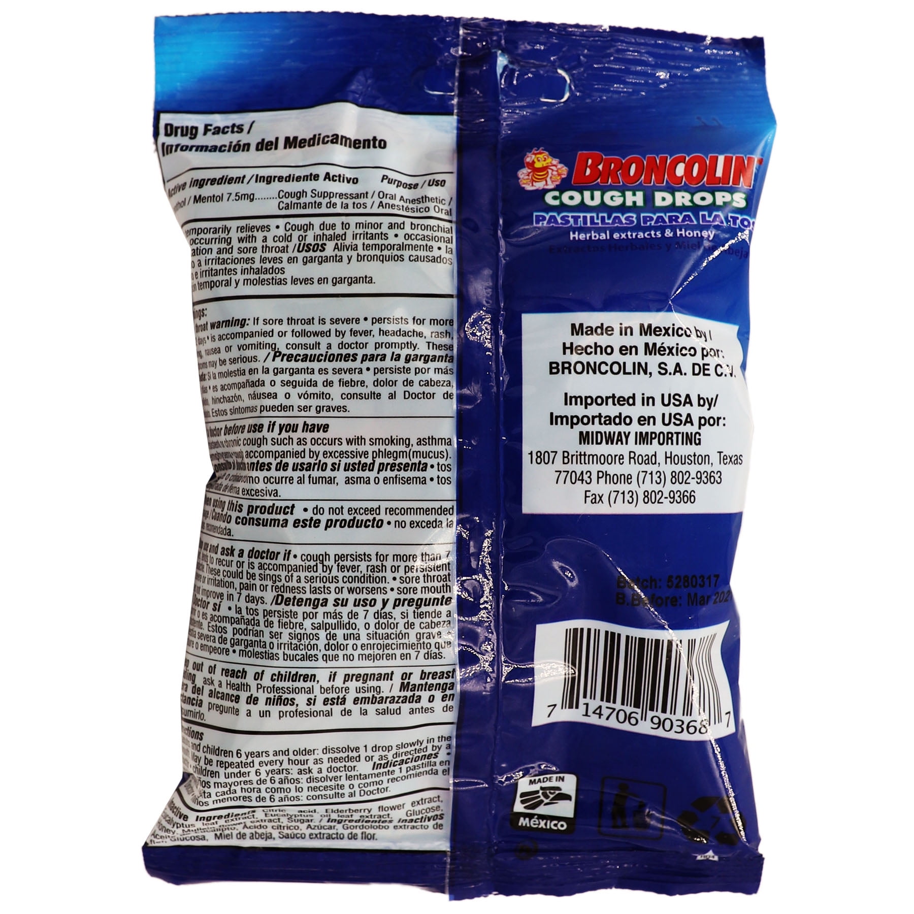 Broncolin cough drops have as main natural ingredients herbal extracts as eucalyptus and honey. Our drops formula will help you feel free from annoying cough and itchy throat at the same time. Whether it is a sore throat or a cough that will not stop, Broncolin is the solution. The soothing properties of Broncolin cough drops bring together the taste of honey and the freshness of eucalyptus fortified with calming menthol. Our product includes 22 Honey drops with menthol, a cough suppressant, it will help calm your cough and is an excellent oral pain reliever.