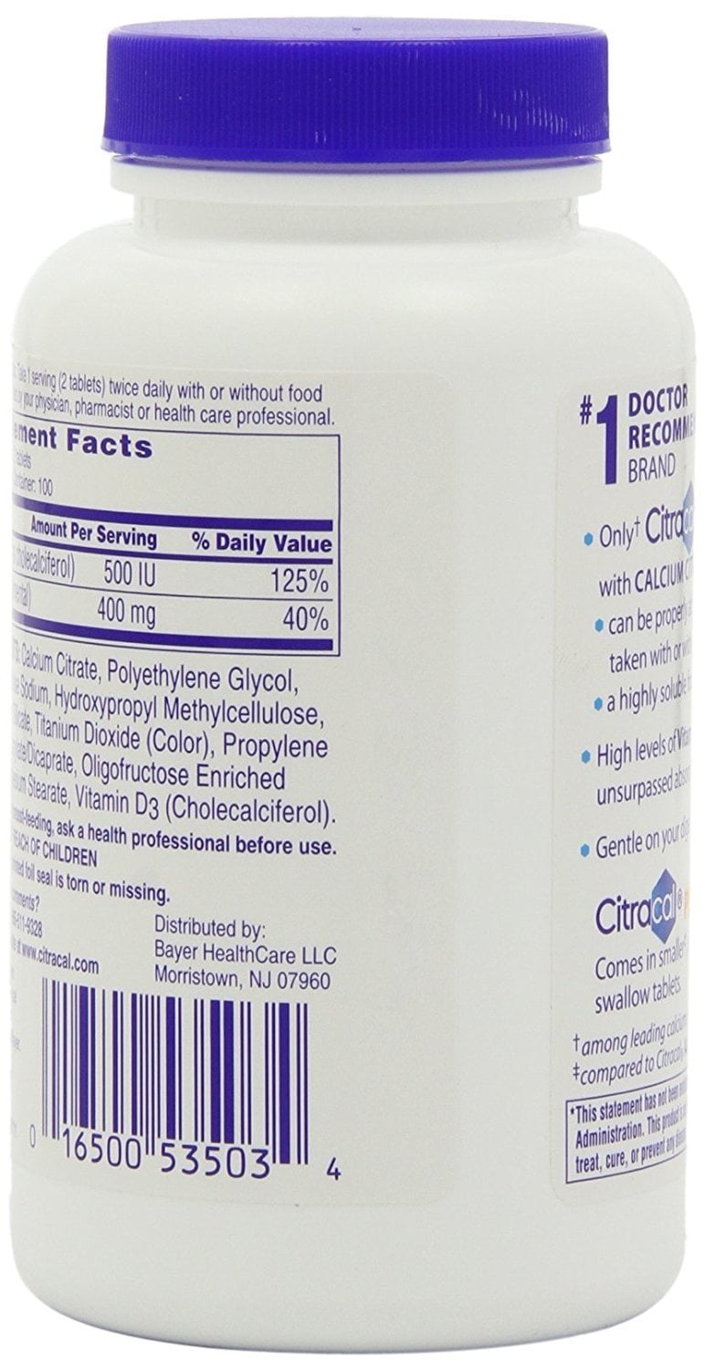 Citracal Calcium Citrate Supplements With Vitamin D – 200 Ea ; UPC: 016500353034UPC: 016500353034 – Citracal Calcium Citrate Supplements With Vitamin D – 200 Ea – Clinically shown to stabilize bone mass. VHigh absorption. – Citracal calcium citrate supplements with vitamin D