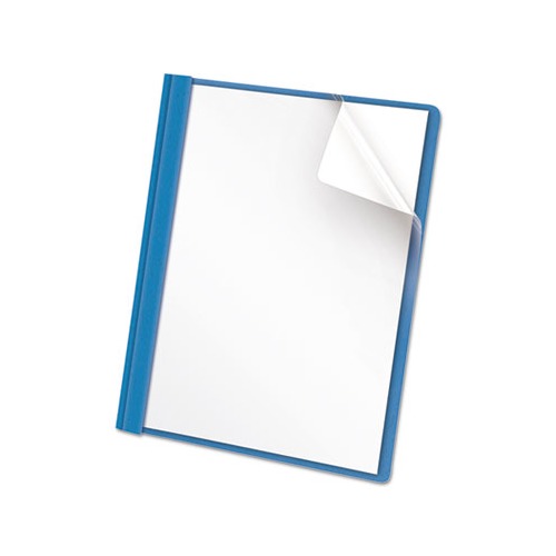Traditional clear front report cover offers a full view of your title page. Three prong fasteners hold letter size punched sheets. Leatherette embossed paper back cover. Front Cover Colors: Clear Color Family: Clear Back Cover Colors: Light Blue Sheet Size: 8.5 x 11.